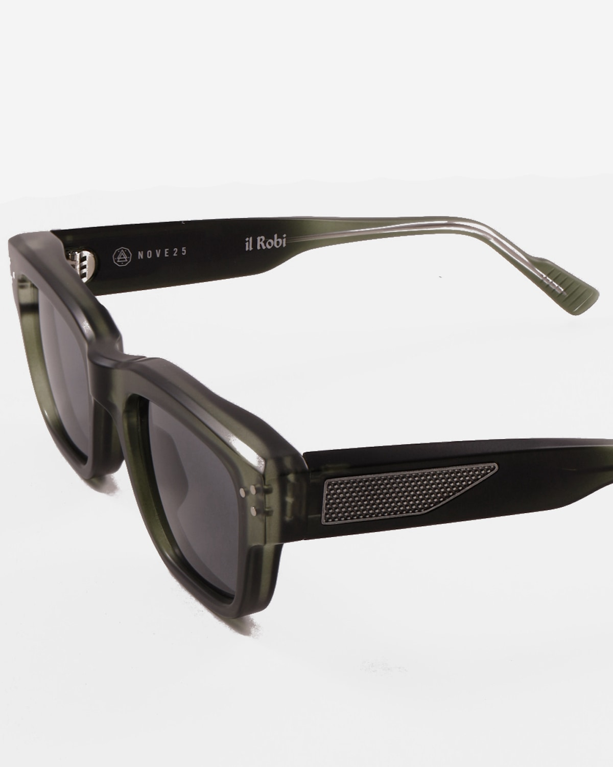 A material model with clean lines that enhances the two Nove25 friezes set on the temples. "Il Robi" is a bold eyewear for a determined and avant-garde look.
