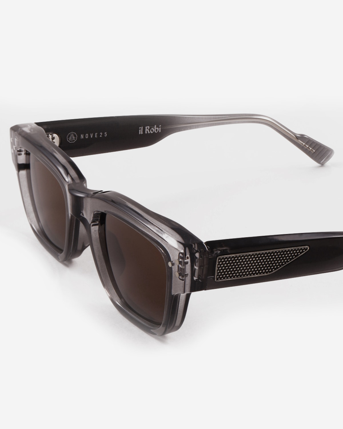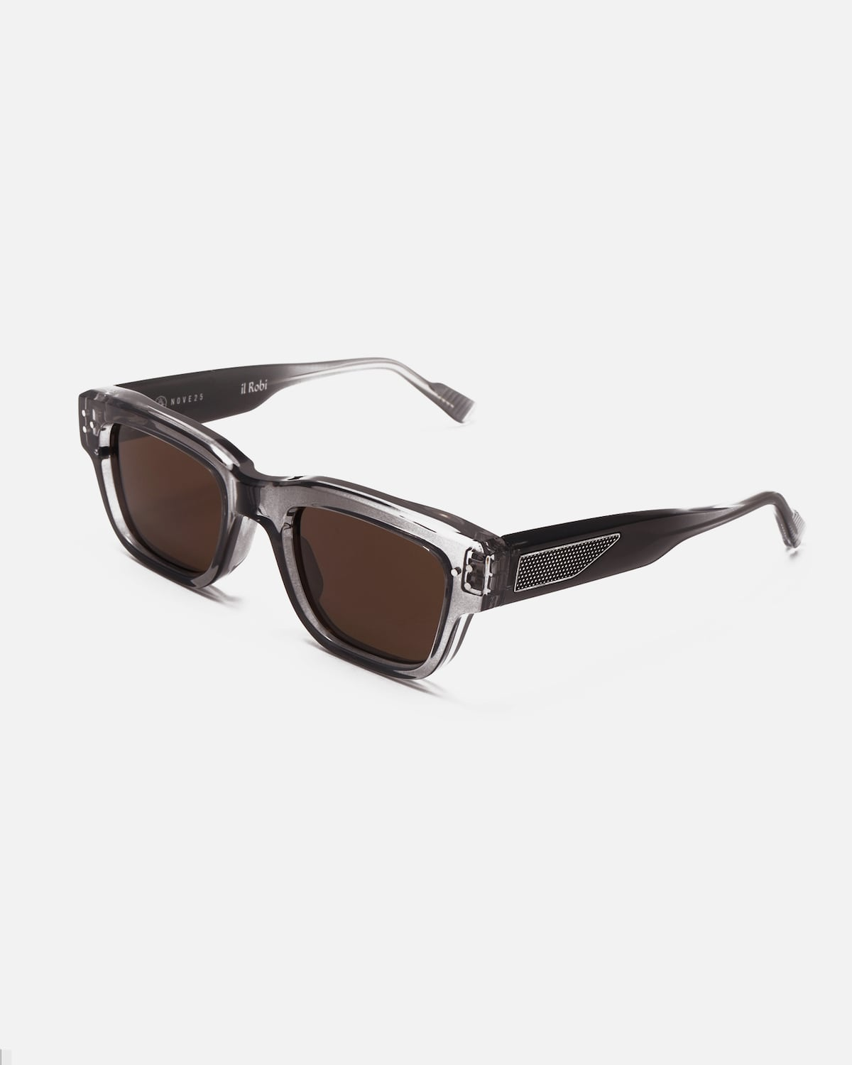 A material model with clean lines that enhances the two Nove25 friezes set on the temples. "Il Robi" is a bold eyewear for a determined and avant-garde look.