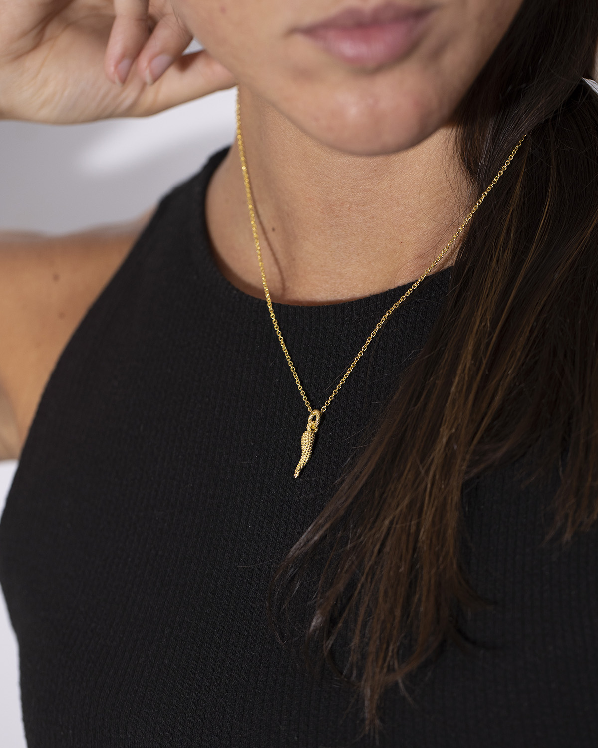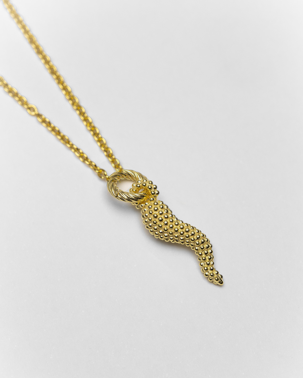 The Small Dotted Horn Lucky Charm Pendant is part of the Puntinati Collection and is made in 925 Sterling Silver. Every Nove25 jewel is designed and produced in Italy using the most modern technologies then hand finished to ensure maximum detail and the highest quality. This jewel finish is Polished Yellow Gold and it is available in one size.