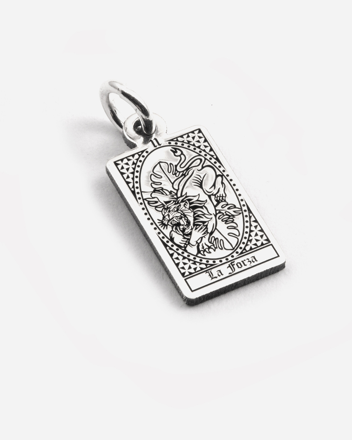 The Strenght Tarot Card Pendant is part of the Tarocchi Collection and is made in 925 Sterling Silver. Every Nove25 jewel is designed and produced in Italy using the most modern technologies then hand finished to ensure maximum detail and the highest quality. This jewel finish is Polished Burnished or Yellow Gold and it is available in the following sizes: 20-28 mm.