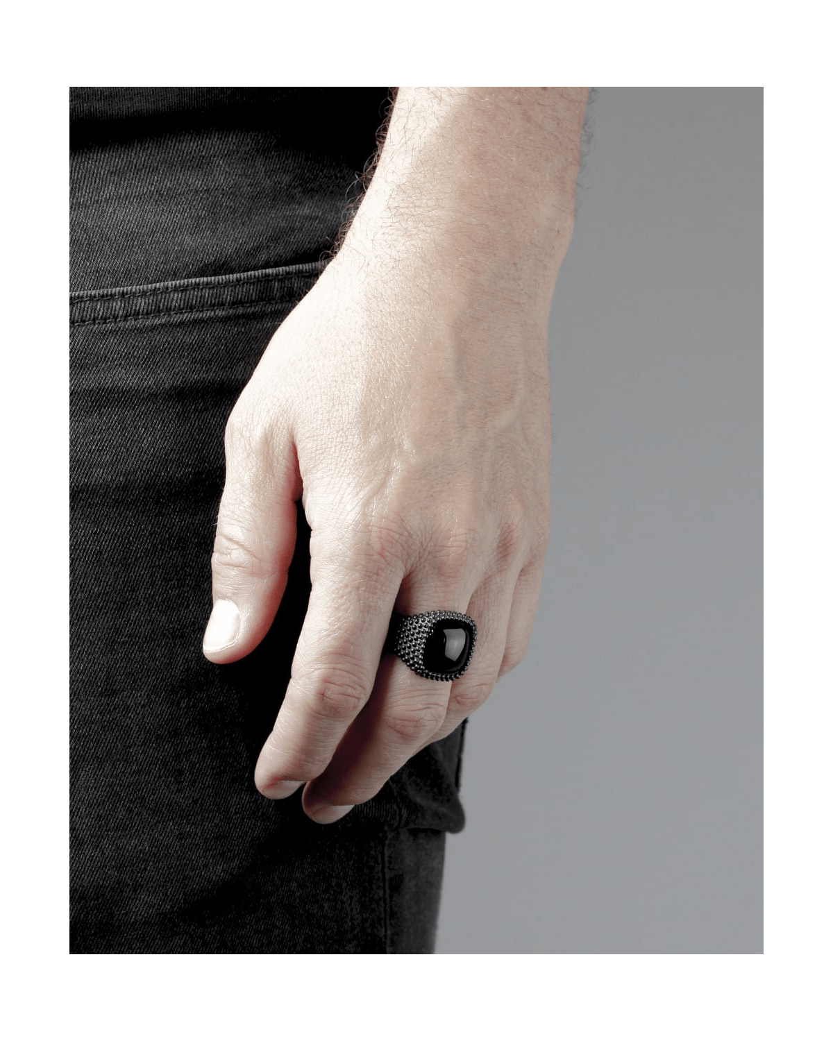 The Total Black Signet Ring & Black Agate is part of the Dotted Collection and is made in 925 Sterling Silver. Every Nove25 jewel is designed and produced in Italy using the most modern technologies then hand finished to ensure maximum detail and the highest quality. This jewel finish is Generic and it is available in the following sizes: 10-12-14-16-18-20-22-24-26.