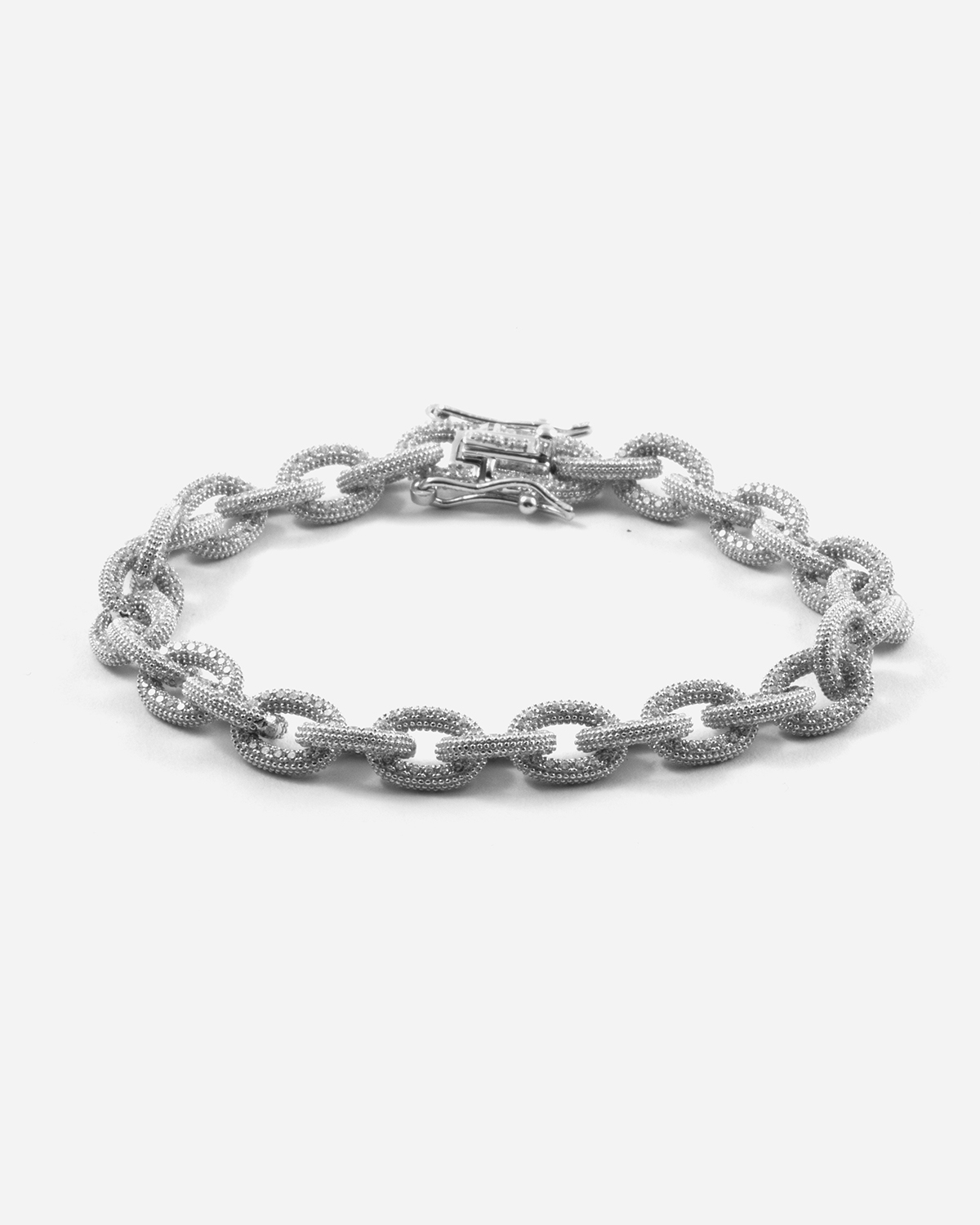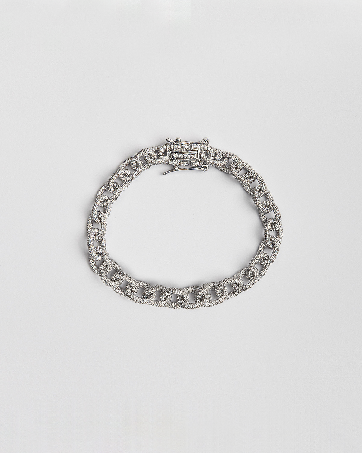 H120 Silver Oval Zircon Curb Bracelet Sterling silver Rhodium finish
