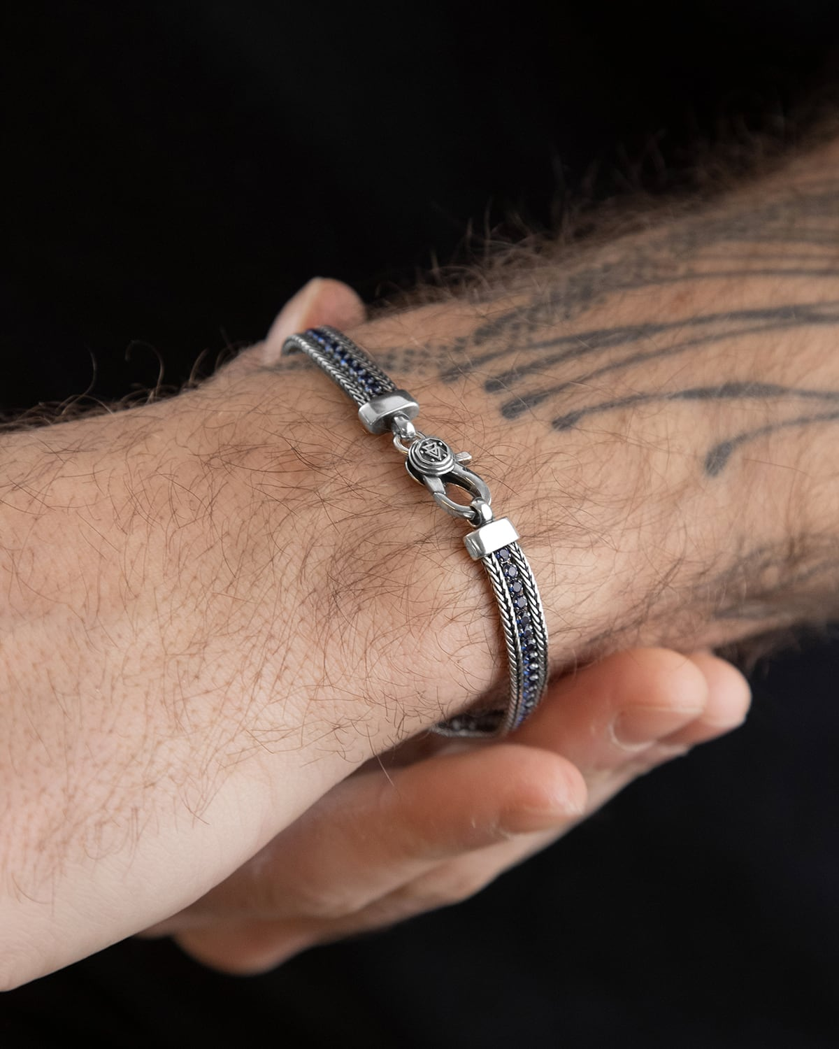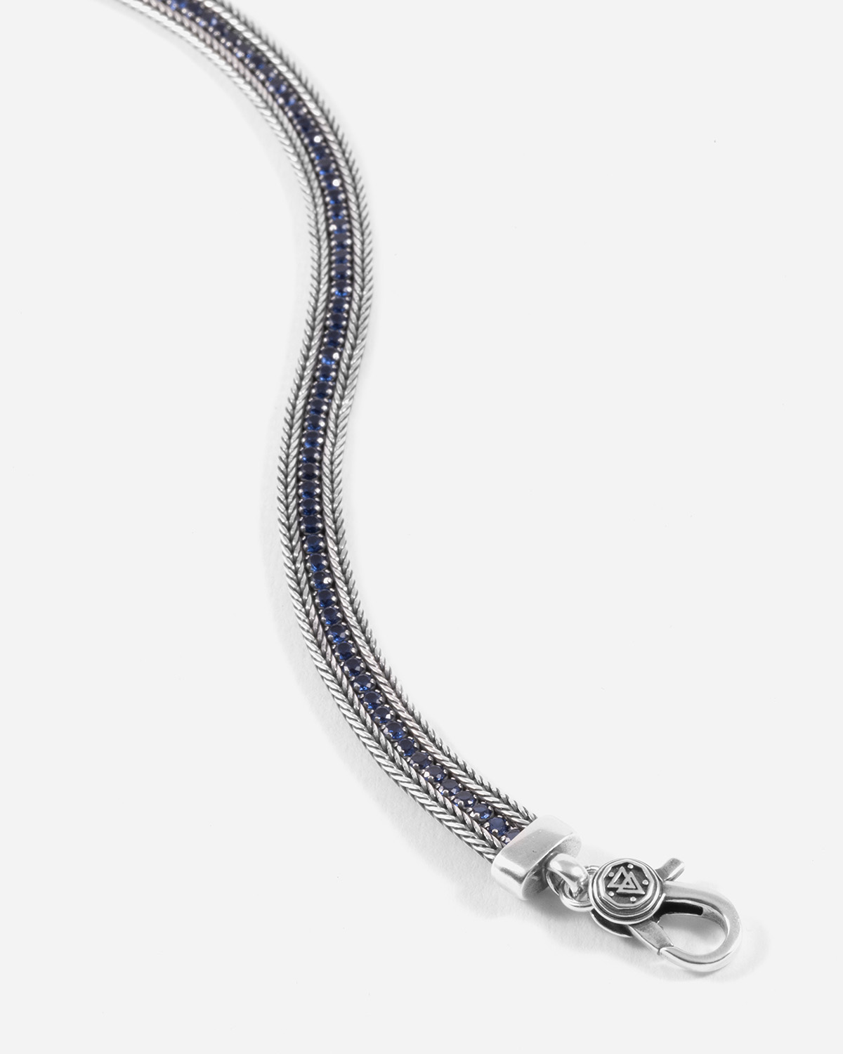 Zwei silberfarbene Fuchsschwanz-Kordelkonturen revolutionieren das klassische Tennisarmband mit blauen Zirkonen. Mit dem TENNIS FOXTAIL bekommt die Tradition einen neuen Look, gebrandet mit dem Nove25-verschluss.