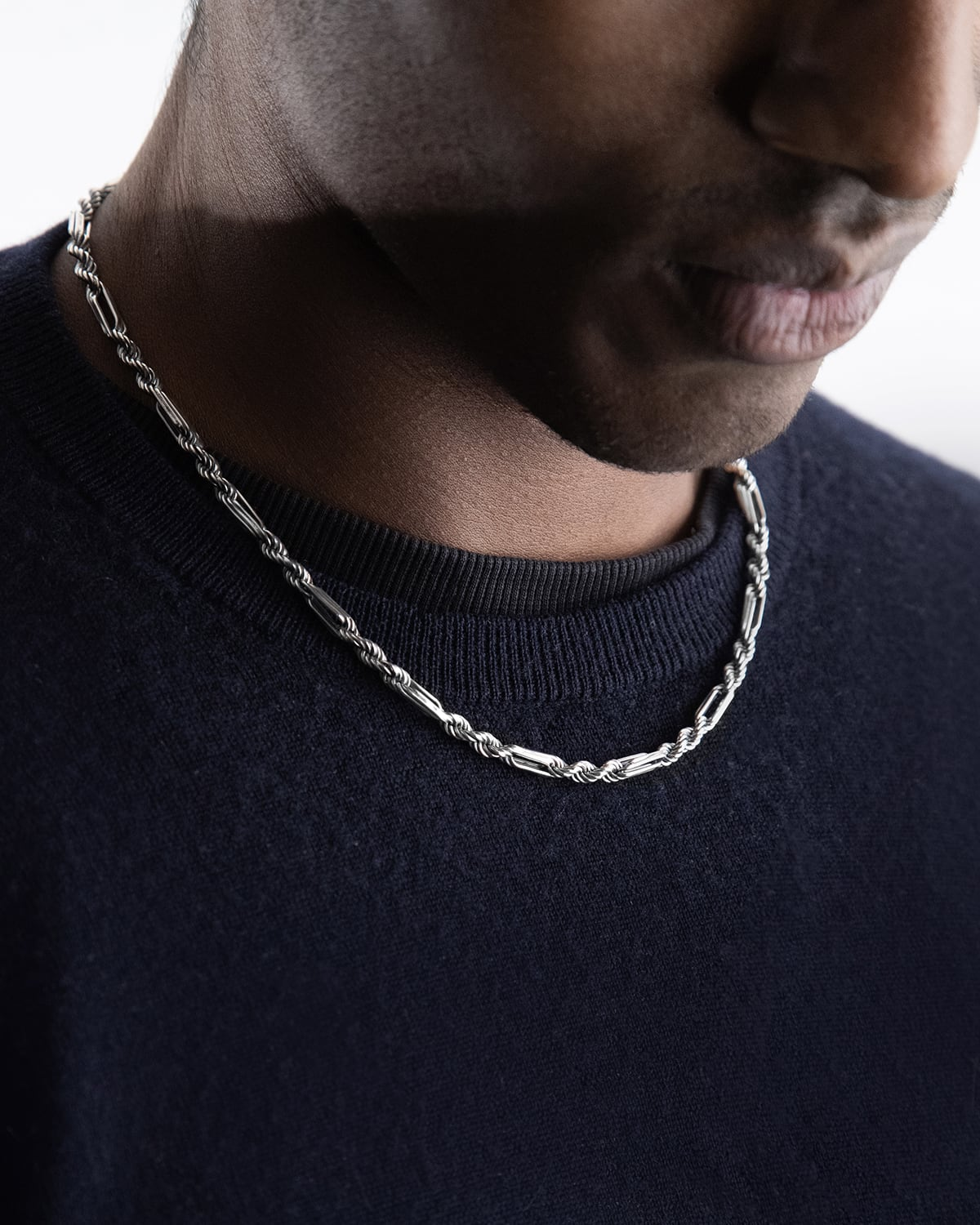 Die Halskette Seil 080 Abwechselnd ist Teil der Timeless-Kollektionen und besteht aus 925er Silber. Wie alle Nove25-Schmuckstücke werden auch diese Halskette in Italien mit modernsten Technologien entworfen und hergestellt sowie von Hand vollendet, um maximale Detailtreue und höchste Qualität zu garantieren. Dieses Schmuckstück wird in der Ausführung Brüniert Poliert geliefert und ist ist in einer Einheitsgröße erhältlich: 45 cm.