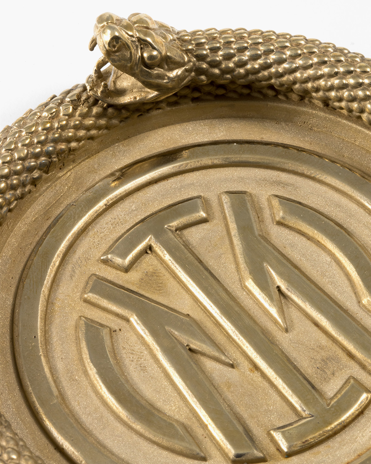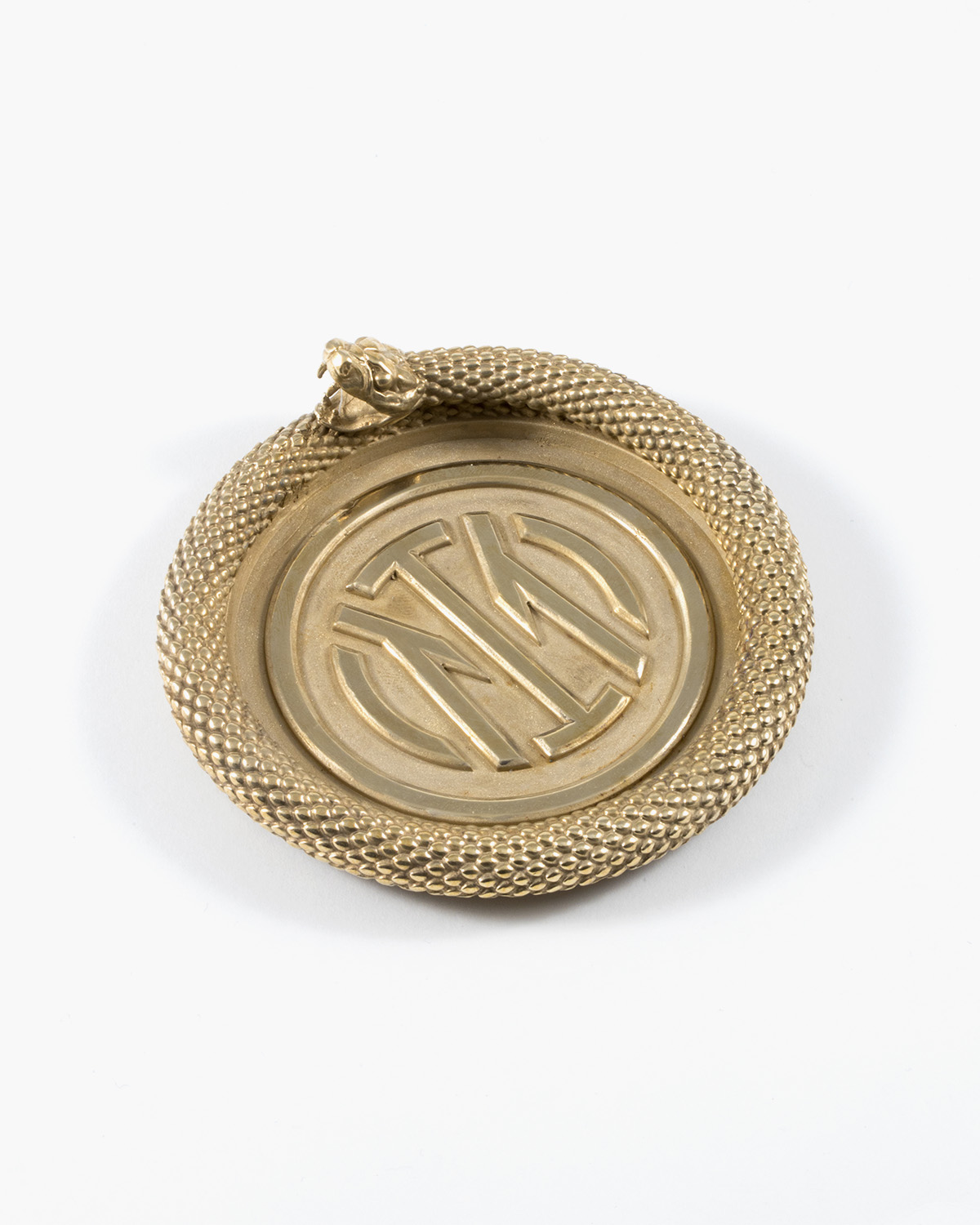 Ablageschale aus Bronze mit runder Schlange und Inter-Logo, Durchmesser 10 cm.