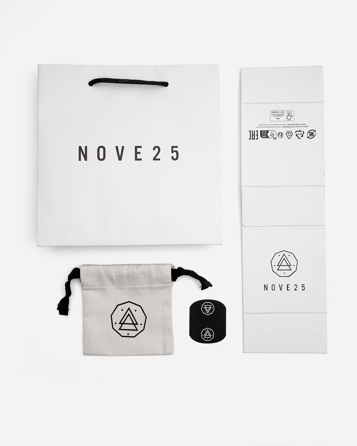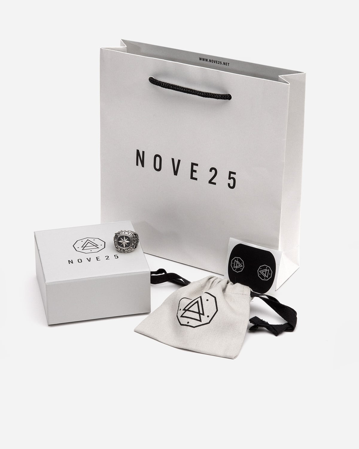 Mit der Nove25 Geschenkbox erhalten Sie Ihren Schmuck mit einem Samtumschlag, einer Geschenkverpackung und einem Aufkleber. Alle mit dem Nove25-Logo.