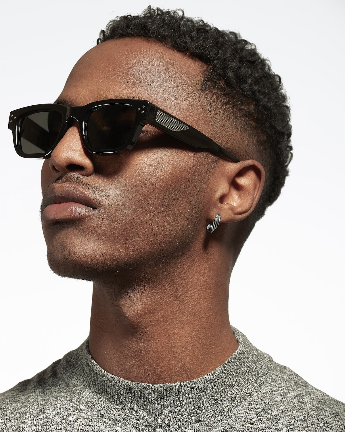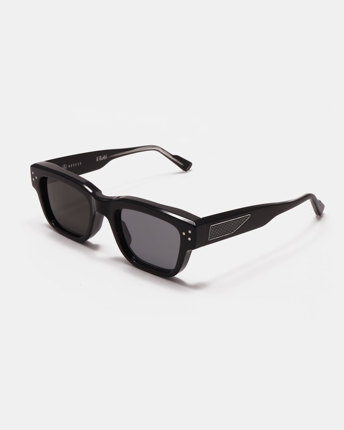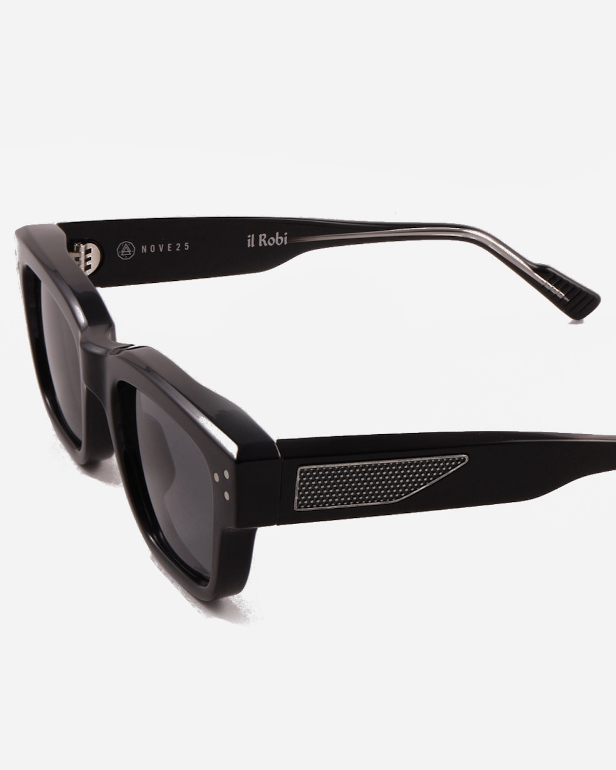 Ein Materialmodell mit klaren Linien, das die beiden Nove25-Verzierungen an den Bügeln hervorhebt. "Der Robi" ist eine entschlossene Brille für einen bestimmten und avantgardistischen Look.