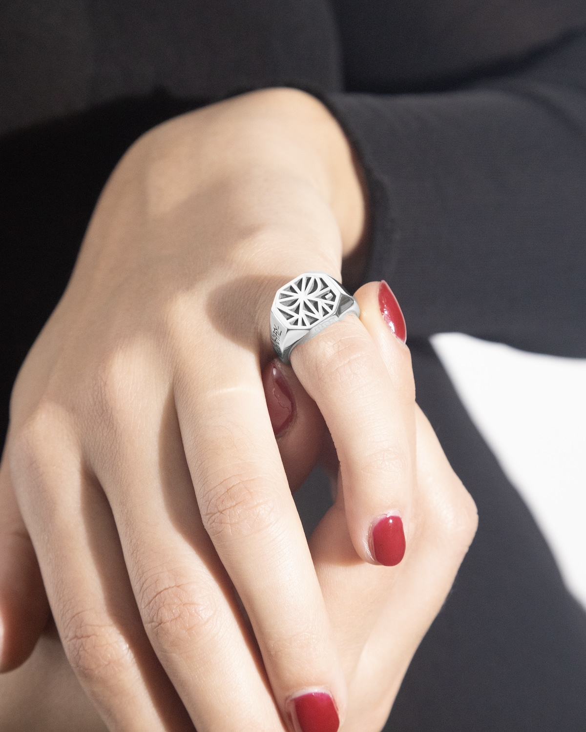 Gestalte deinen persönlichen Siegelring Oktagon Solomostry aus 925 Sterling Silber mit dem MyNove25 Konfigurator. Wählen Sie Ihre Personalisierung, wählen Sie Ihre Größe und kaufen Sie ihn direkt online. Unsere Goldschmiedemeister fertigen Ihren persönlichen Ring für Sie an und Sie können ihn direkt zu Hause in Empfang nehmen oder in einem unserer Geschäfte abholen.