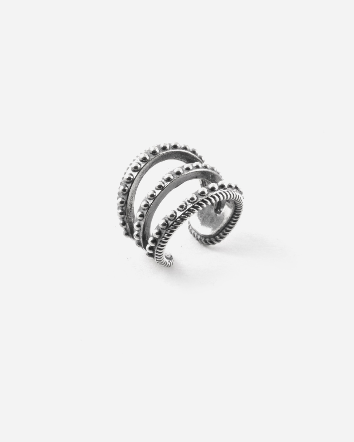 Der Earcuff Triple Tie Gepunktet ist Teil der Puntinati-Kollektionen und besteht aus 925er Silber. Wie alle Nove25-Schmuckstücke wird auch dieser Earcuff in Italien mit modernsten Technologien entworfen und hergestellt sowie von Hand vollendet, um maximale Detailtreue und höchste Qualität zu garantieren. Dieses Schmuckstück wird in der Brüniert Poliert geliefert und ist in einer Einheitsgröße erhältlich.