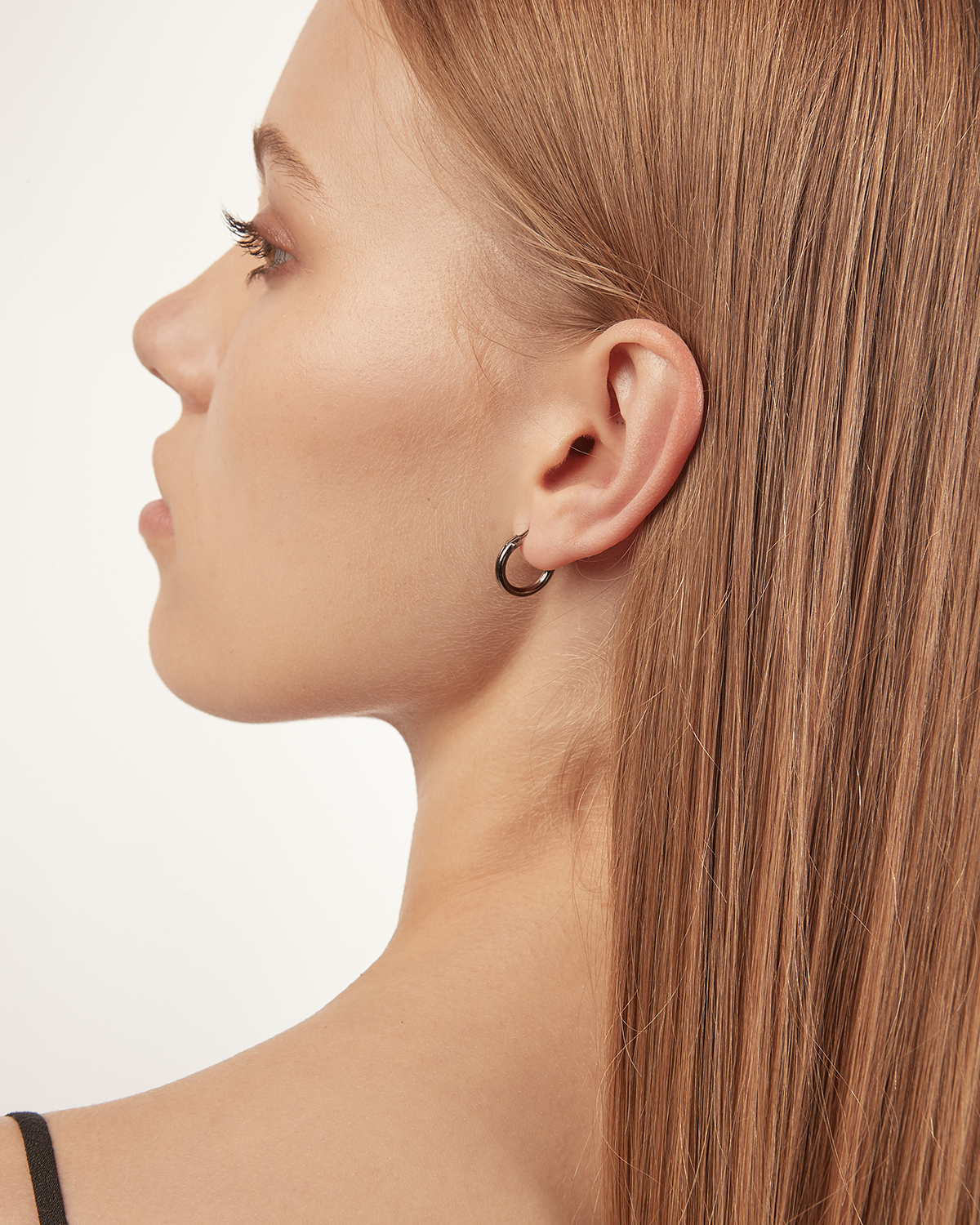 Das Round Tube 2.5 Closing Pin Couple Hoop Earrings / Polished Black Rhodium ist Teil der 8-10-13 mm und besteht aus 925er Silber. Wie alle Nove25-Schmuckstücke werden auch dieses Ohrringe in Italien mit modernsten Technologien entworfen und hergestellt sowie von Hand vollendet, um maximale Detailtreue und Qualität zu garantieren. Dieses Schmuckstück wird in der Ausführung Schwarzrhodium Poliert geliefert und ist in den folgenden Größen erhältlich: 8-10-13 mm.