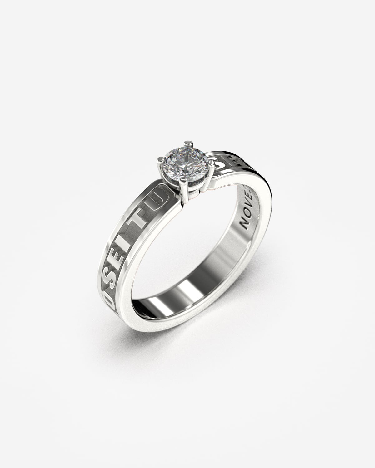 The Silver Text Solitaire Engagement Ring is part of the Fine Jewelry Collection and is made of Sterling Silver and Lab Grown Diamond. The products in this collection are all customizable and, like all Nove25 jewelry, this Ring is designed and crafted in Italy using the latest technology and finished by hand to ensure the highest detail and quality.