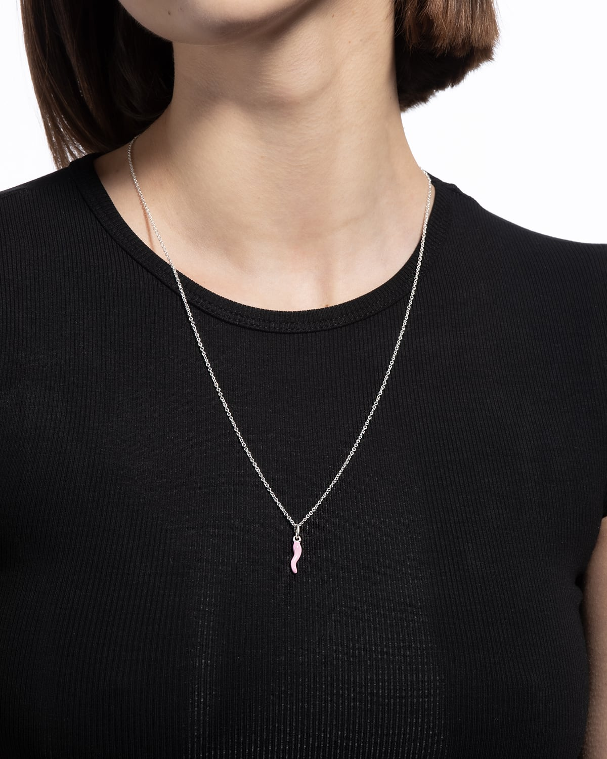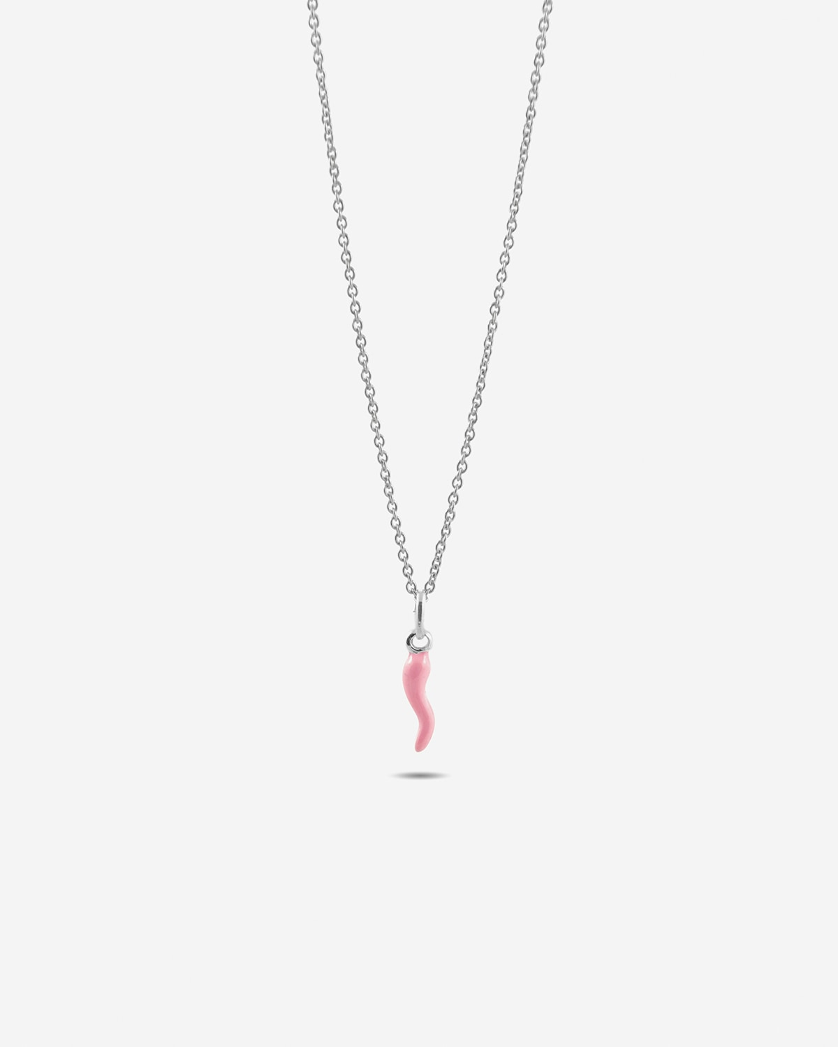 The Pink Horn Pendant is part of the Miniature Collection and is made in 925 Sterling Silver. Every Nove25 jewel is designed and produced in Italy using the most modern technologies then hand finished to ensure maximum detail and the highest quality. This jewel finish is Polished and it is available in one size.
