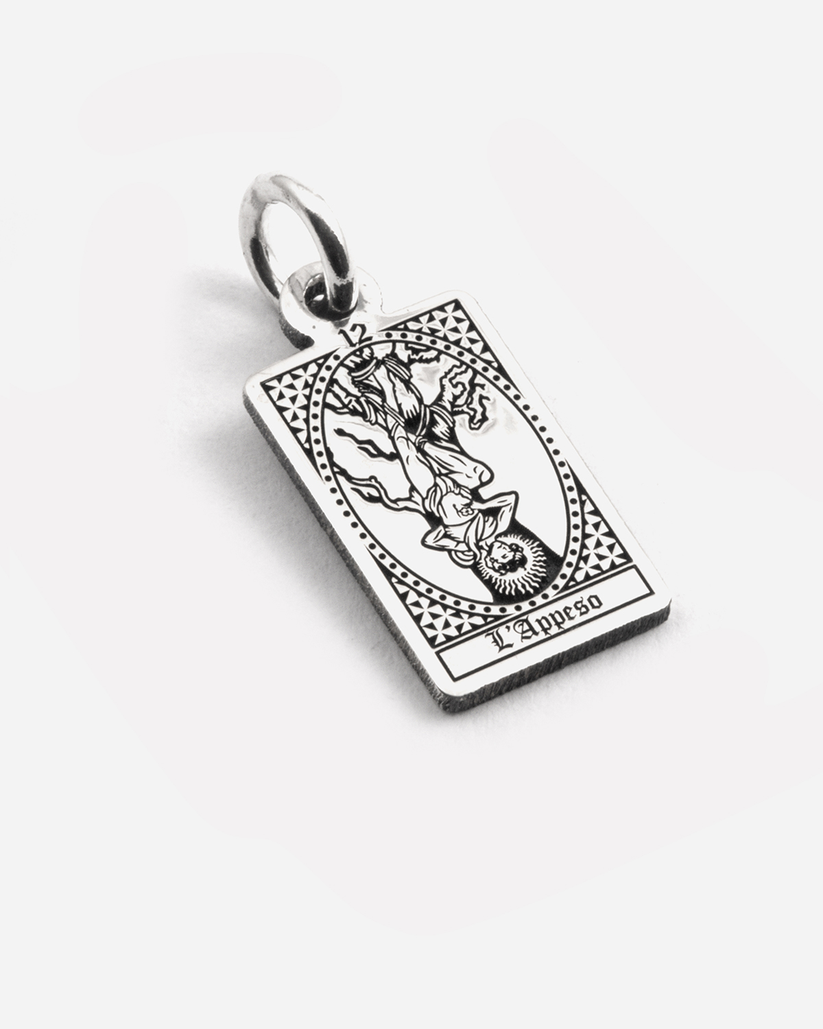 The Hanged Man Tarot Card Pendant is part of the Tarocchi Collection and is made in 925 Sterling Silver. Every Nove25 jewel is designed and produced in Italy using the most modern technologies then hand finished to ensure maximum detail and the highest quality. This jewel finish is Polished Burnished or Yellow Gold and it is available in the following sizes: 20-28 mm.