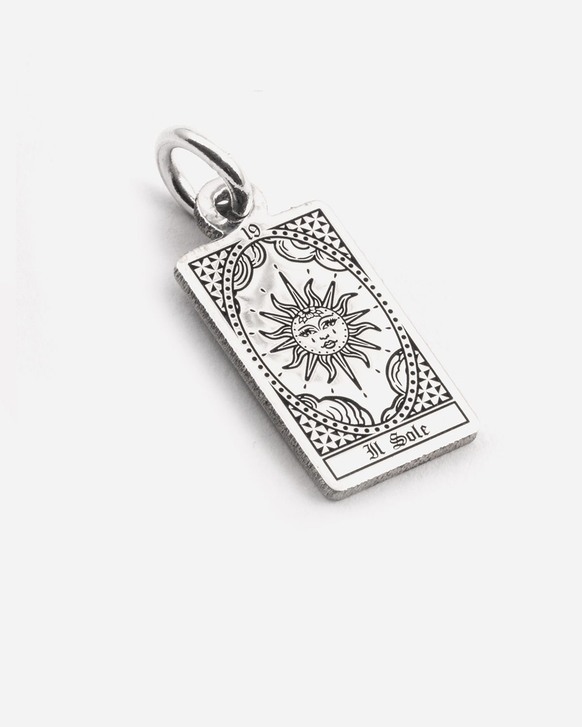 The Sun Tarot Card Pendant is part of the Tarocchi Collection and is made in 925 Sterling Silver. Every Nove25 jewel is designed and produced in Italy using the most modern technologies then hand finished to ensure maximum detail and the highest quality. This jewel finish is Polished Burnished or Yellow Gold and it is available in the following sizes: 20-28 mm.