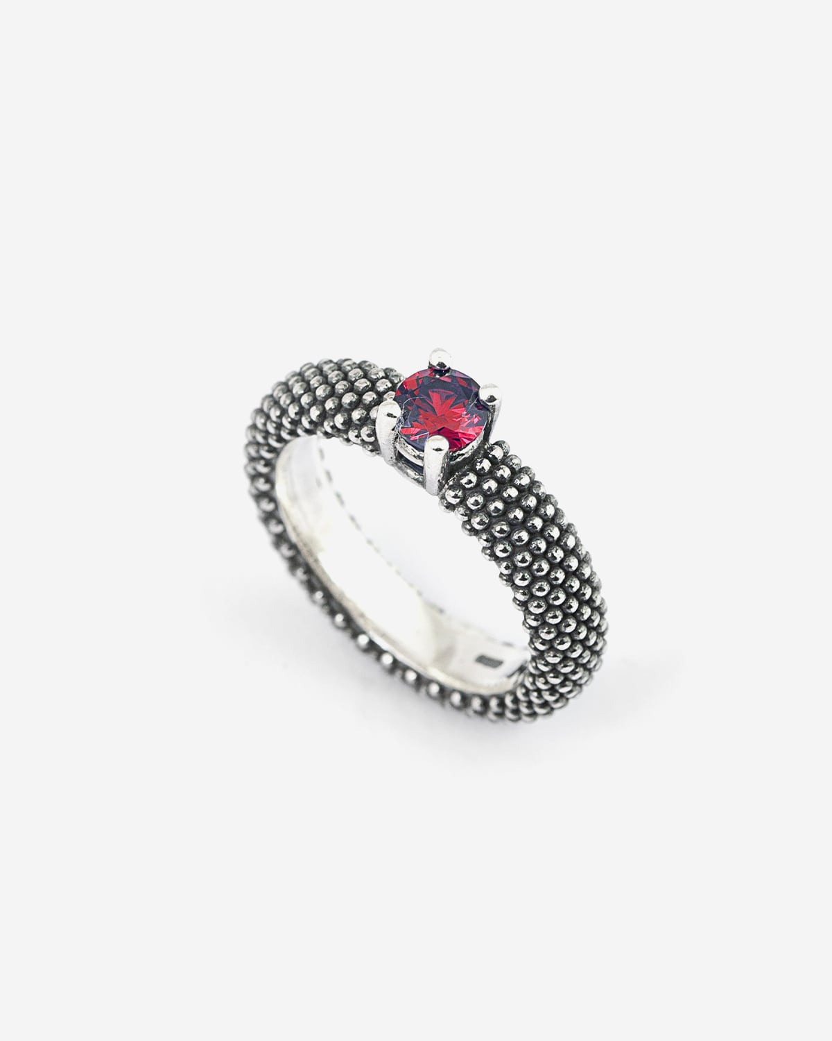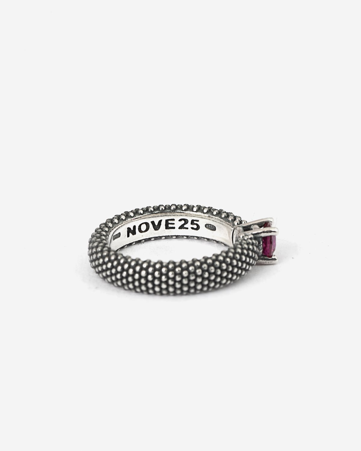 La Alianza Punteada Solitario Corindón forma parte de la Colección Puntinati y está fabricada en plata de ley 925. Como todas las joyas Nove25 también este Anillo se diseña y fabrica íntegramente en Italia con las tecnologías más modernas y se termina a mano para garantizar el máximo cuidado en los detalles y la más alta calidad. Esta joya se presenta en un acabado Bruñido Brillante y está disponible en las siguientes tallas: 8-10-12-14-16-18.