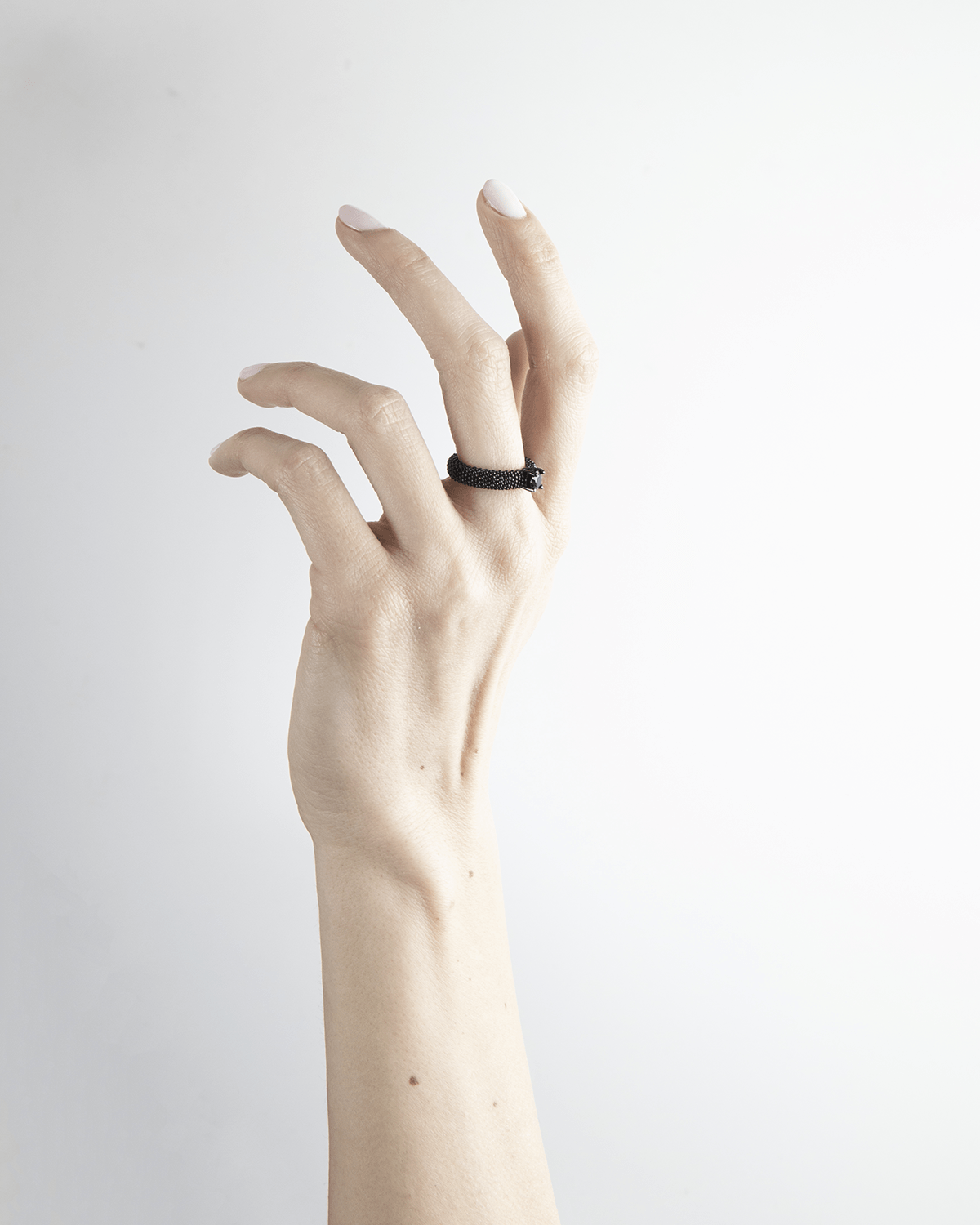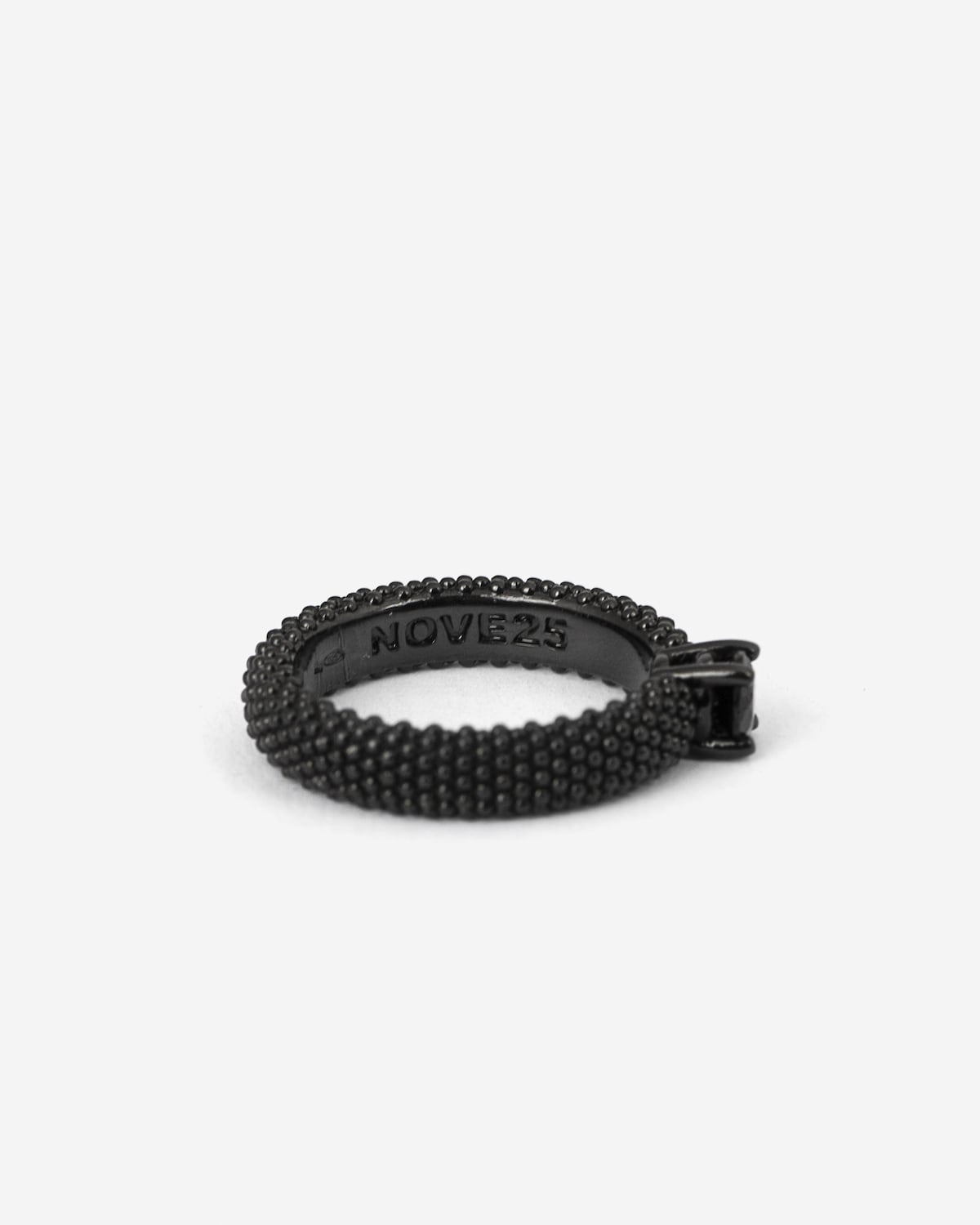 La Alianza Punteada Solitario Total Black forma parte de la Colección Puntinati y está fabricada en plata de ley 925. Como todas las joyas Nove25 también este Anillo se diseña y fabrica íntegramente en Italia con las tecnologías más modernas y se termina a mano para garantizar el máximo cuidado en los detalles y la más alta calidad. Esta joya se presenta en un acabado Rutenio Brillante Pintado y está disponible en las siguientes tallas: 8-10-12-14-16-18.