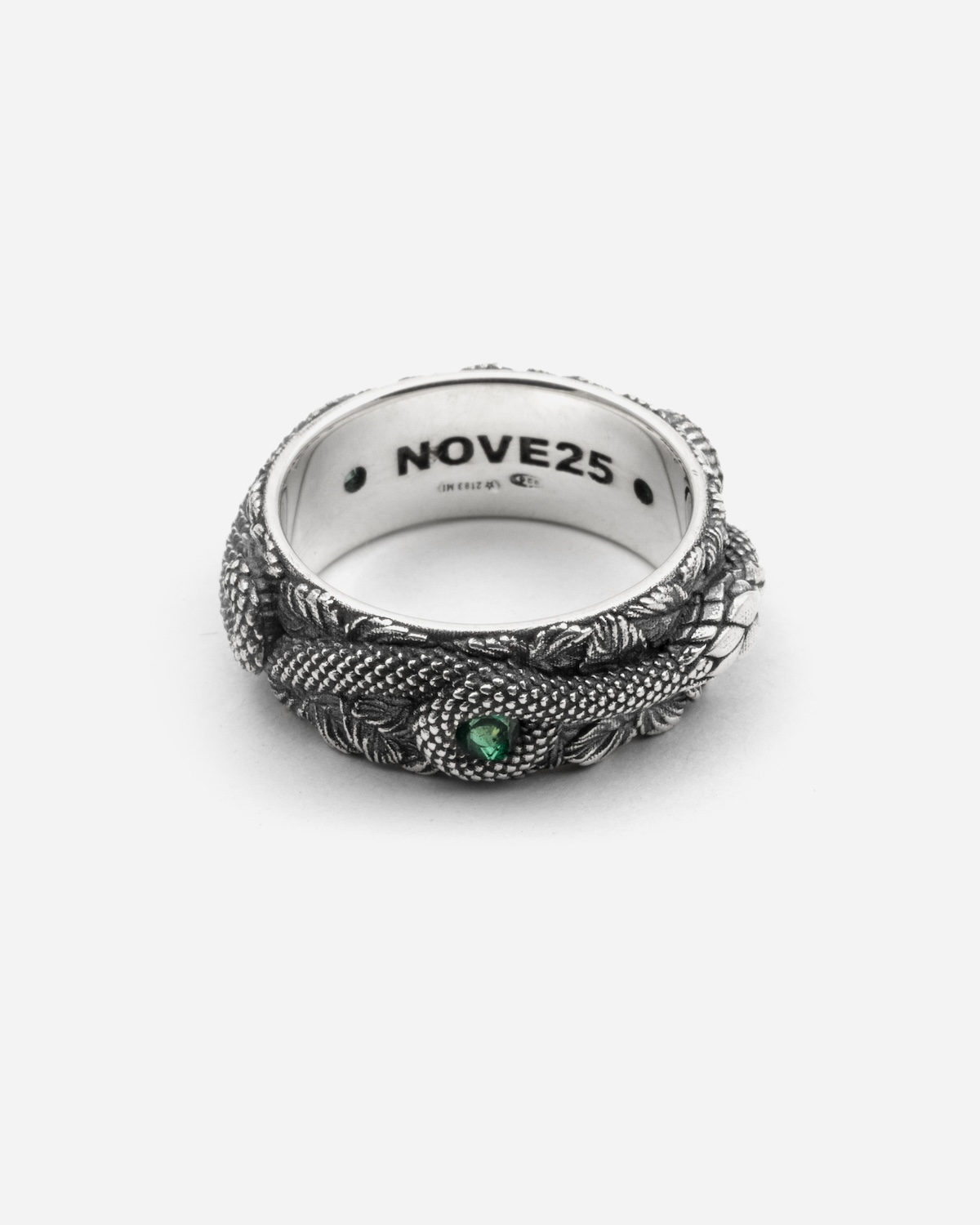 El Anillo Banda Serpiente Con Brillantes Verdes forma parte de la Colección Snake y está fabricado en plata de ley 925. Como todas las joyas Nove25 también este Anillo se diseña y fabrica íntegramente en Italia con las tecnologías más modernas y se termina a mano para garantizar el máximo cuidado en los detalles y la más alta calidad. Esta joya se presenta en un acabado Bruñido Brillante y está disponible en las siguientes tallas: 12-14-16-18-20-22.