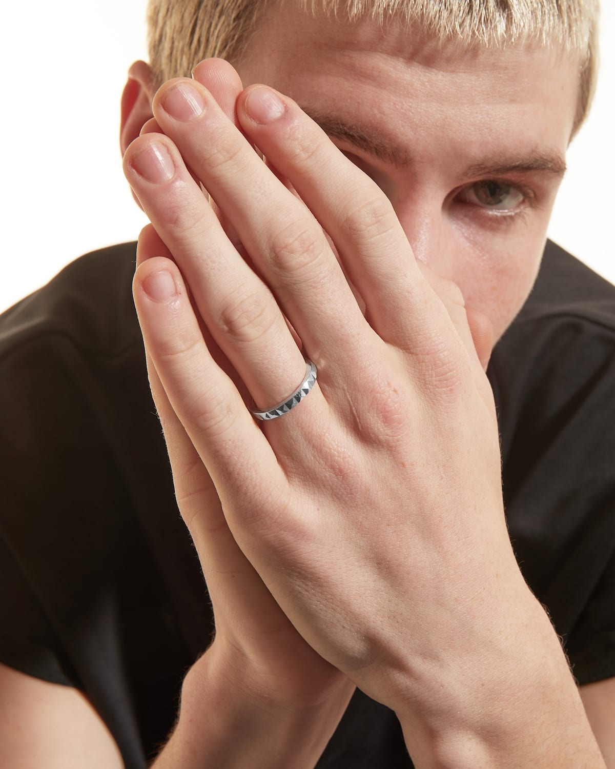 El Anillo De Banda De Tachuelas forma parte de la Colección Timeless y está fabricado en plata de ley 925. Como todas las joyas Nove25 también este Anillo se diseña y fabrica íntegramente en Italia con las tecnologías más modernas y se termina a mano para garantizar el máximo cuidado en los detalles y la más alta calidad. Esta joya se presenta en un acabado Plata Pulida y está disponible en las siguientes tallas: 8-10-12-14-16-18-20.