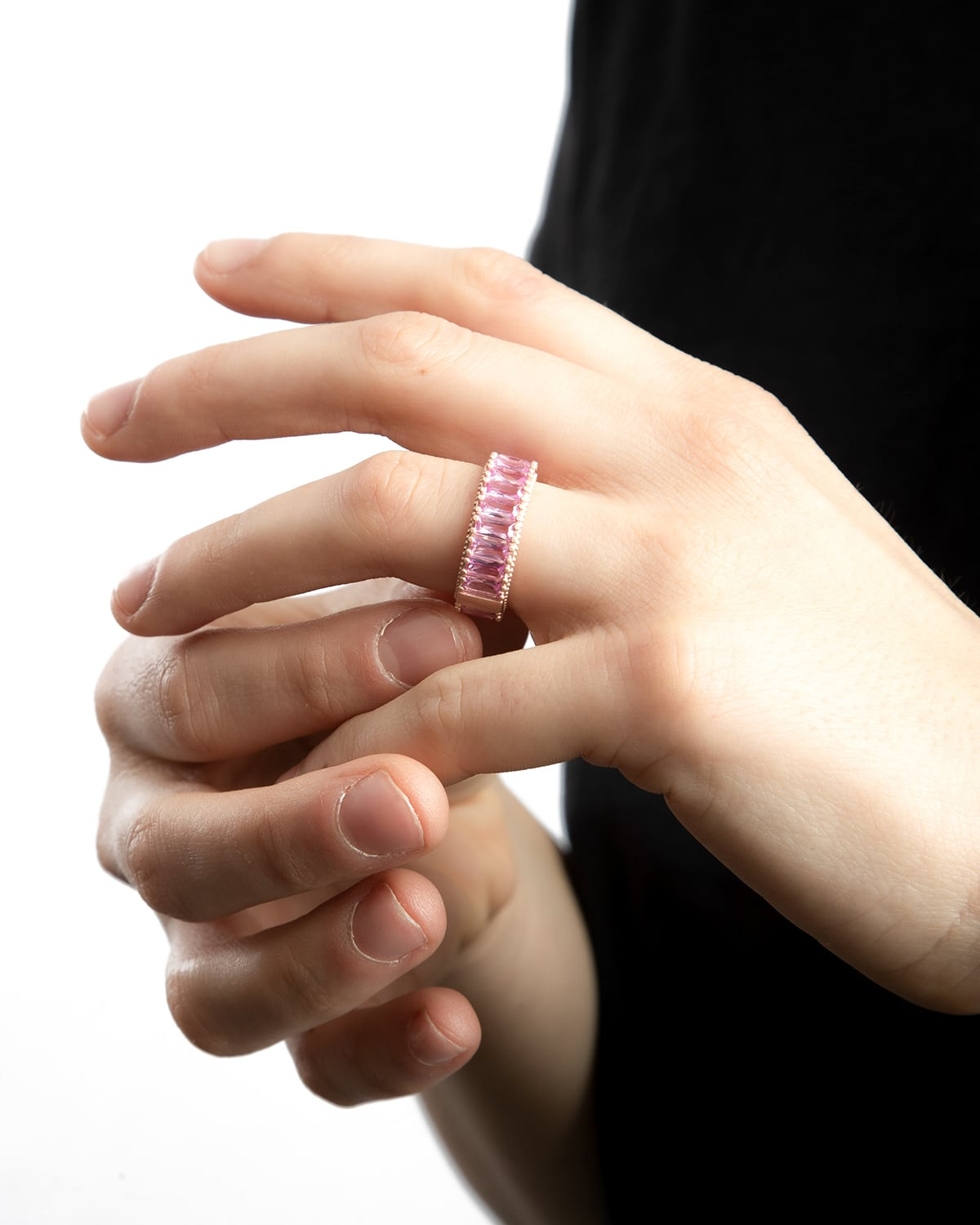 Dos capas, dos formas de brillar. La alianza compuesta por dos bandas, una de ellas más pequeña de brillantes, se hace eco del espíritu atrevido de la colección de primavera y demuestra que los polos opuestos se atraen y juntos brillan el doble.