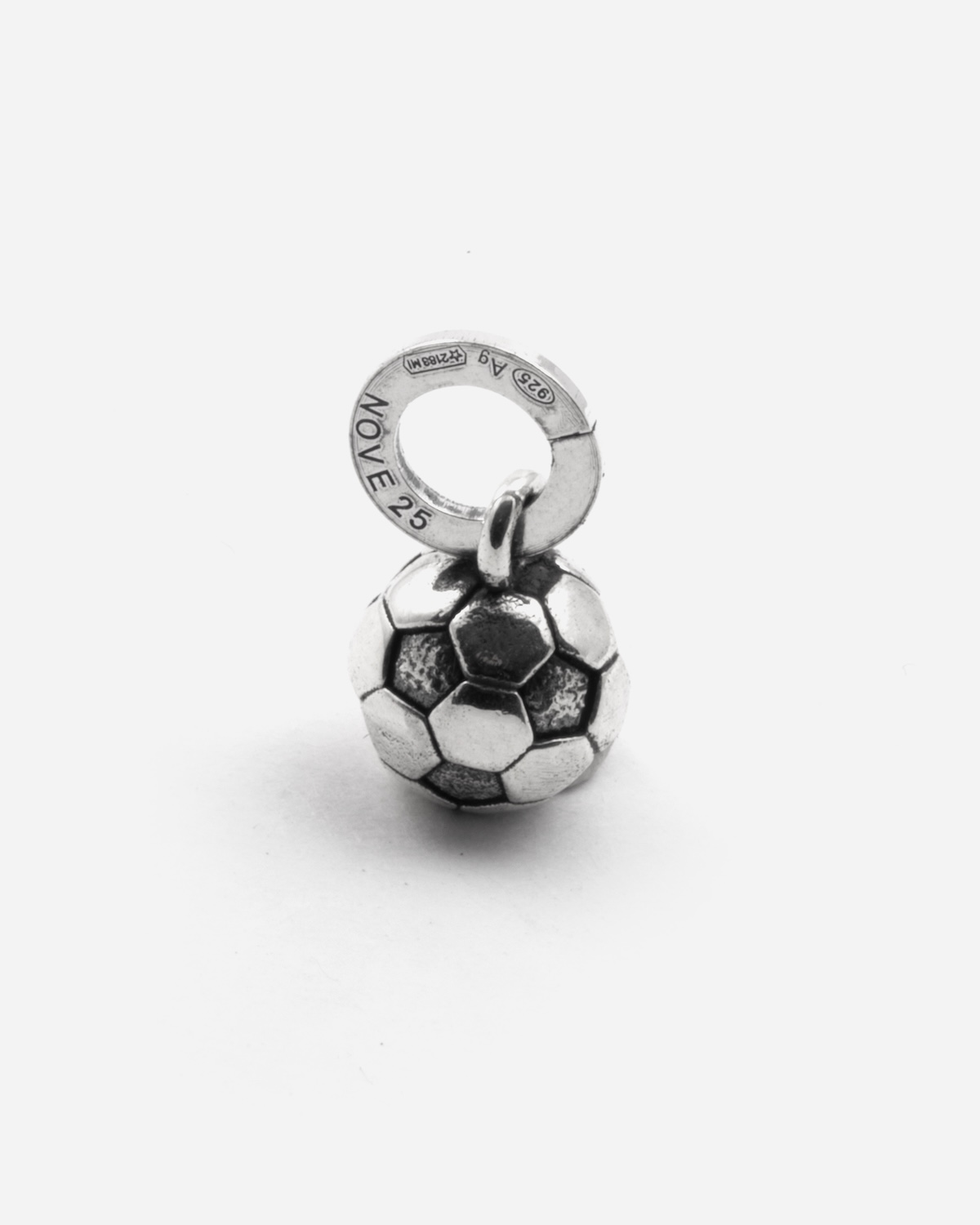 El Mini Charm Colgante Balón De Fútbol forma parte de la Colección Miniature y está fabricado en plata de ley 925. Como todas las joyas Nove25 también este Colgante se diseña y fabrica íntegramente en Italia con las tecnologías más modernas y se termina a mano para garantizar el máximo cuidado en los detalles y la más alta calidad. Esta joya se presenta en un acabado Bruñido Brillante y está disponible en talla única.