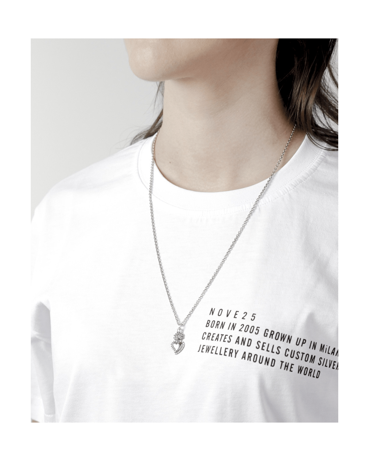 El Colgante Corazón Ex-Voto Pequeño forma parte de la Colección Traditional y está fabricado en plata de ley 925. Como todas las joyas Nove25 también este Colgante se diseña y fabrica íntegramente en Italia con las tecnologías más modernas y se termina a mano para garantizar el máximo cuidado en los detalles y la más alta calidad. Esta joya se presenta en un acabado Bruñido Brillante y está disponible en talla única.