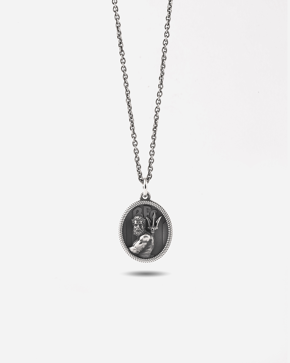 Enmarcado por una decoración en forma de cuerda, el Colgante Oval Neptuno está adornado con un bajorrelieve de la famosa estatua del dios de los mares, una figura mitológica de mirada orgullosa e intrépida, capaz de dominar la calma y la tempestad. De hecho, así es como el club boloñés navega por las agitadas aguas del fútbol internacional, unido bajo su propia bandera y el emblema grabado en la joya de plata. Con la afición como timón y el corazón como brújula, el rumbo nunca se equivoca.