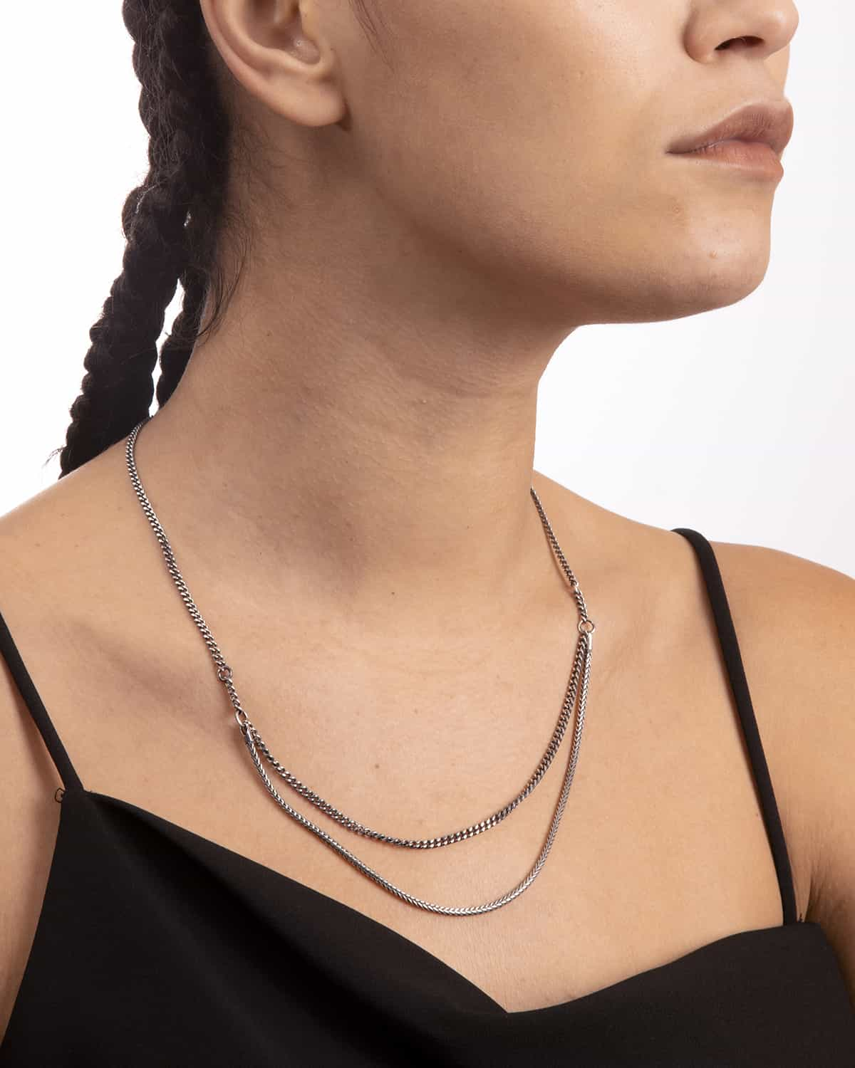 El Collar Hanger forma parte de la Colección Fili y está fabricado en plata de ley 925. Como todas las joyas Nove25 también este Collar se diseña y fabrica íntegramente en Italia con las tecnologías más modernas y se termina a mano para garantizar el máximo cuidado en los detalles y la más alta calidad. Esta joya se presenta en un acabado Bruñido Brillante y está disponible en las siguientes tallas: 50 cm.