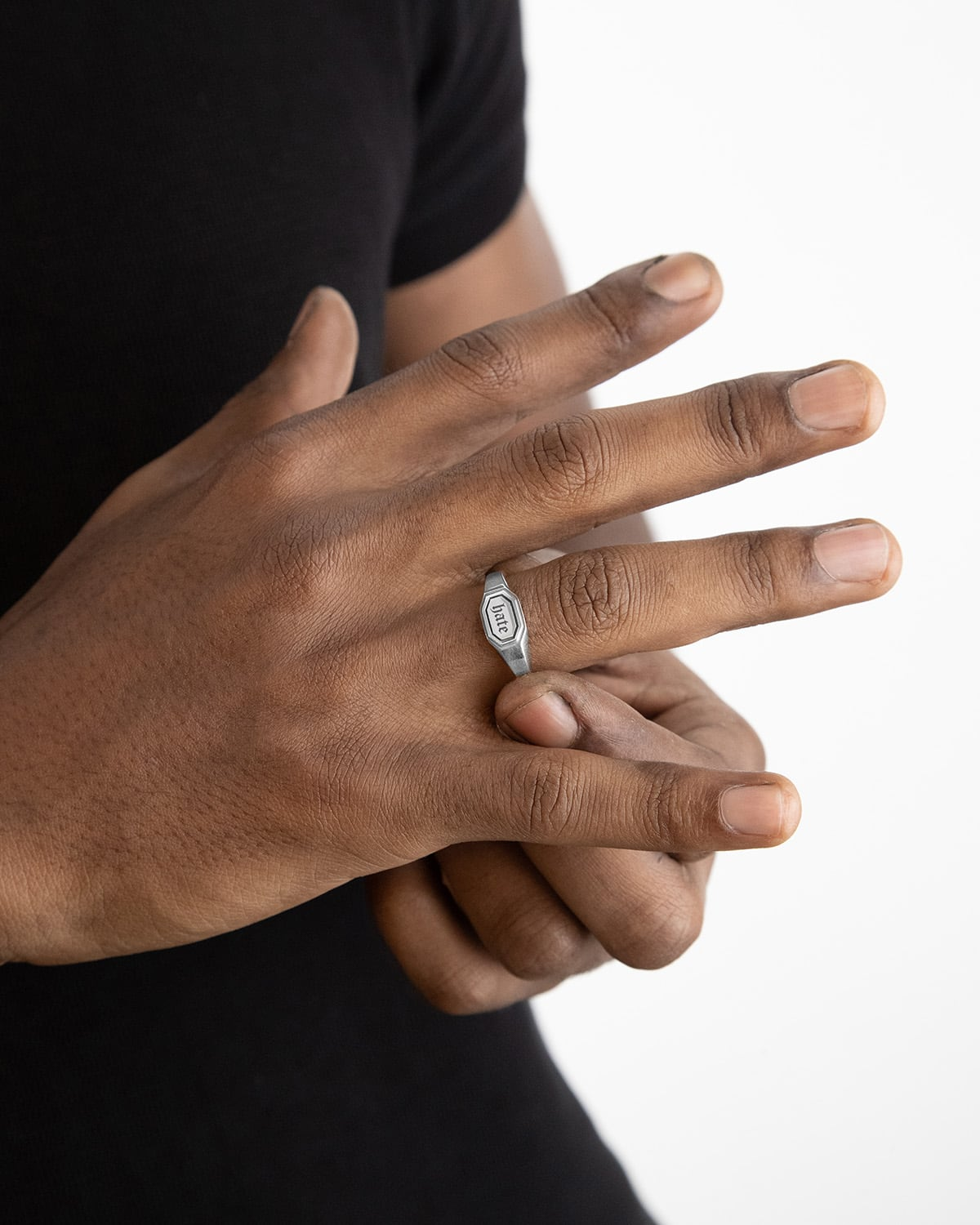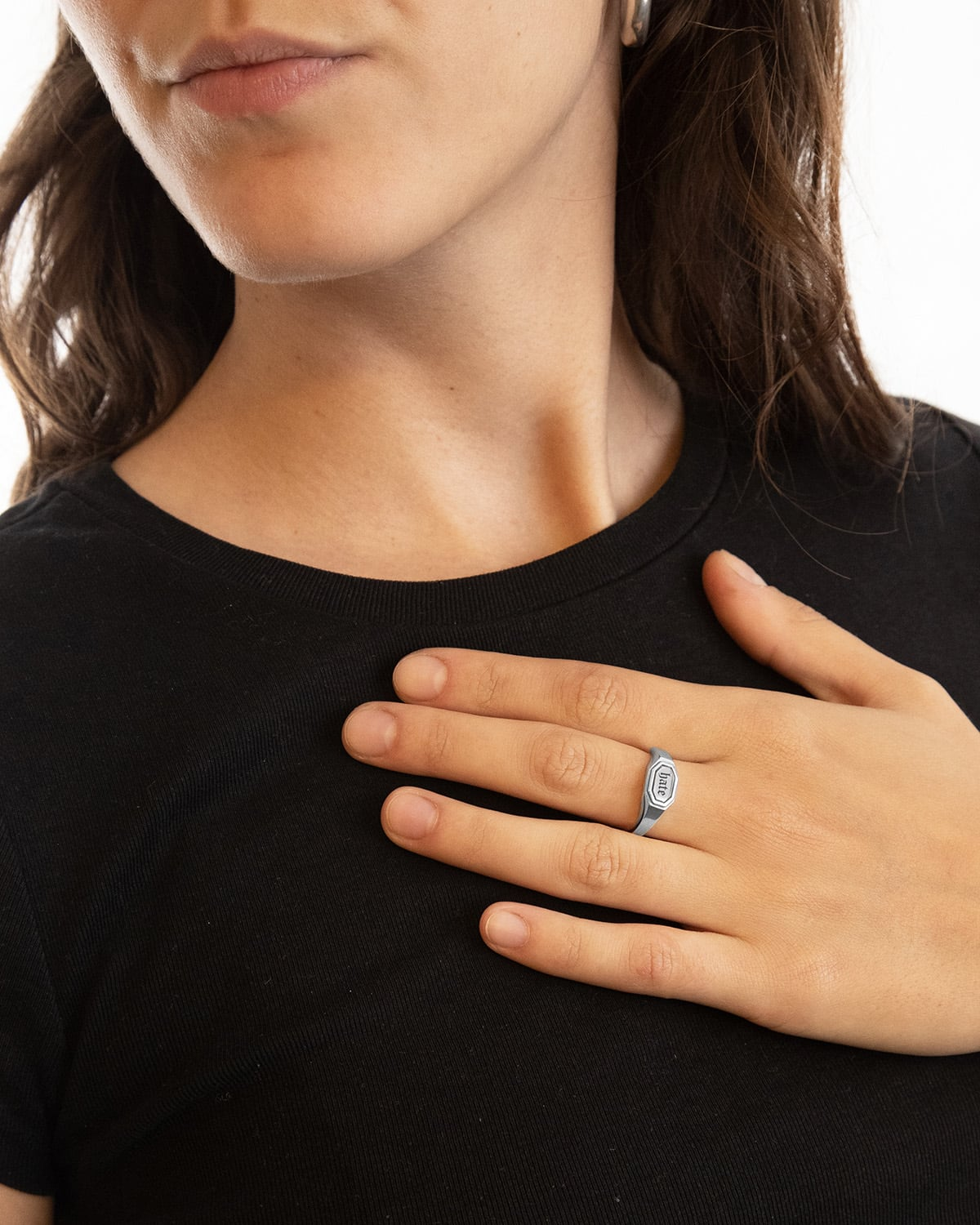 ANILLO CHEVALIER OCTAGÓN HORIZONTAL BALANCE DE PLATA PERSONALIZABLE