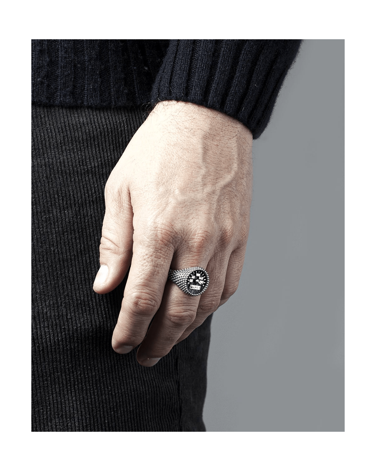 ANILLO CHEVALIER REDONDO PUNTEADO CON DECORACIÓN