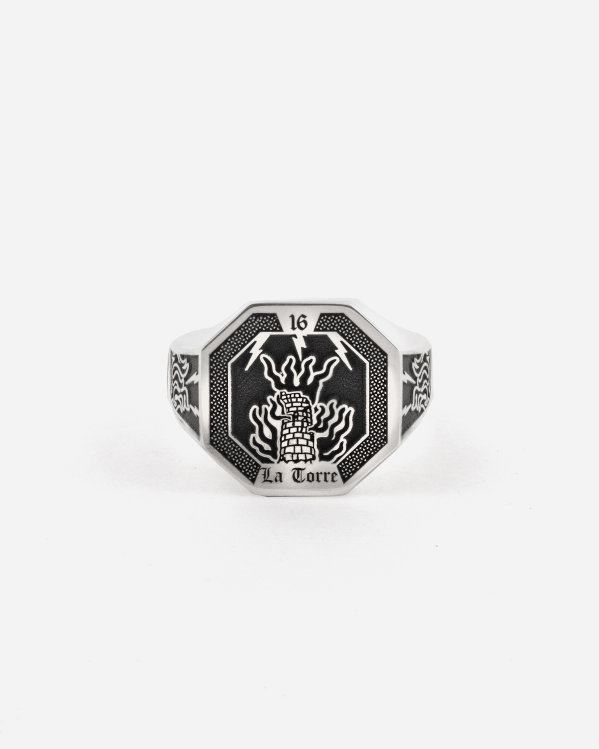 El Chevalier Carta De Tarot La Torre forma parte de la Colección Tarocchi y está fabricado en plata de ley 925. Como todas las joyas Nove25 también este Anillo se diseña y fabrica íntegramente en Italia con las tecnologías más modernas y se termina a mano para garantizar el máximo cuidado en los detalles y la más alta calidad. Esta joya se presenta en un acabado Bruñido Brillante y está disponible en las siguientes tallas: de 3 a 28.
