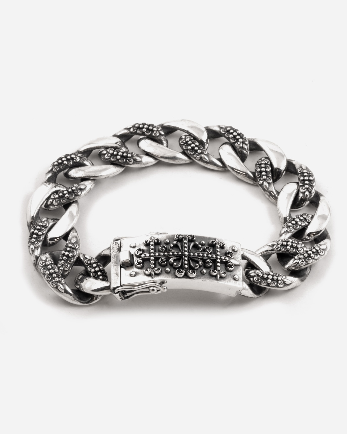 PULSERA GRUMETTE CON TEXTURE GÓTICA INSIGNA DE PLATA