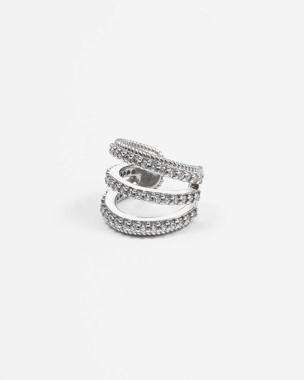 El Pendiente Único Ear Cuff Triple Tie forma parte de la Colección Opulence y está fabricado en plata de ley 925. Como todas las joyas Nove25 también estos Pendientes se diseñan y fabrican íntegramente en Italia con las tecnologías más modernas y se termina a mano para garantizar el máximo cuidado en los detalles y la más alta calidad. Esta joya se presenta en un acabado Brillante y está disponible en talla única.