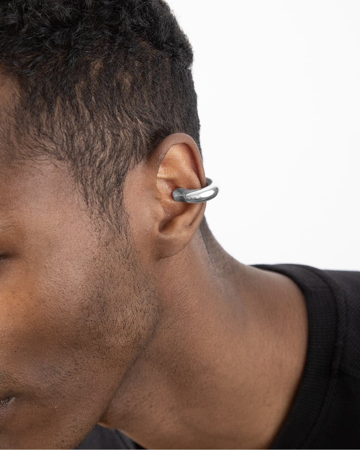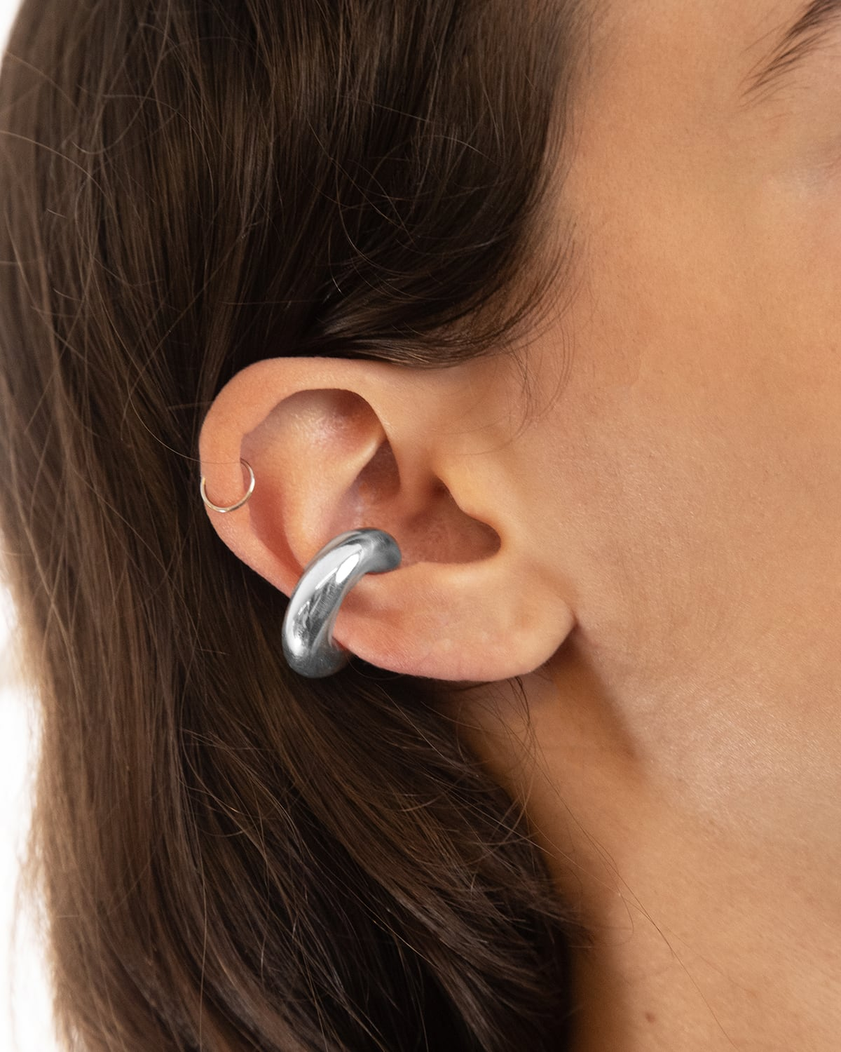 Atrevido y circular, el pendiente Earcuff de alambre de 7 mm de plata pulida ilumina y envuelve el lóbulo con sencillez y carácter.