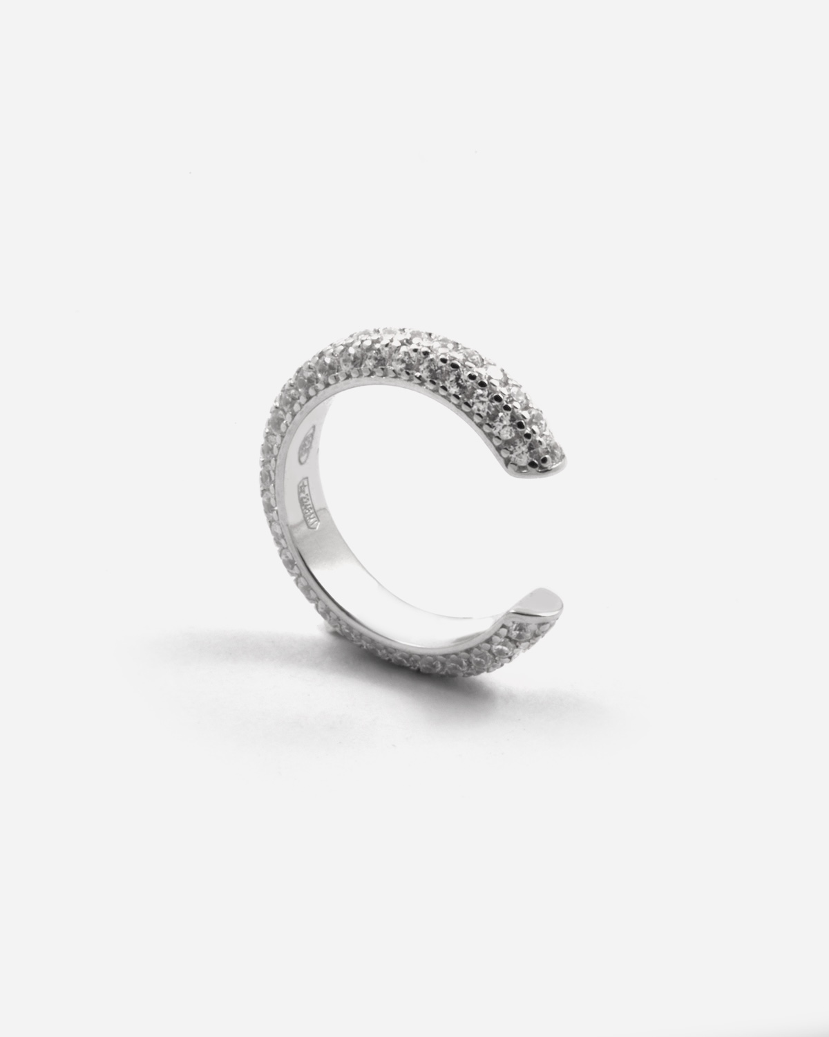 PENDIENTE ÚNICO DE ARO CIERRE CATALÁN MITAD ZIRCONIA CÚBICA BLANCOS / RODIO PLATA DE LEY