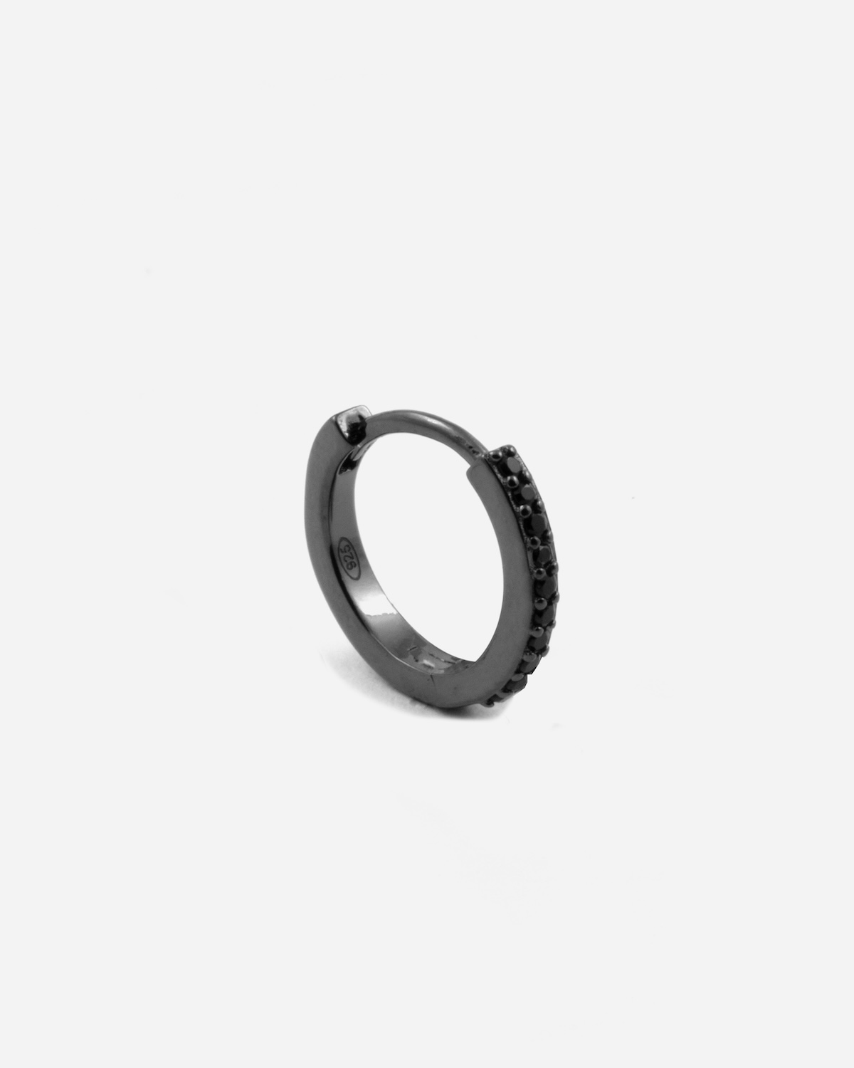 Oscuro y agresivo, el Pendiente Círculo Pequeño con Circonita Negra y Rutenio es la variante adecuada para un look más asertivo.