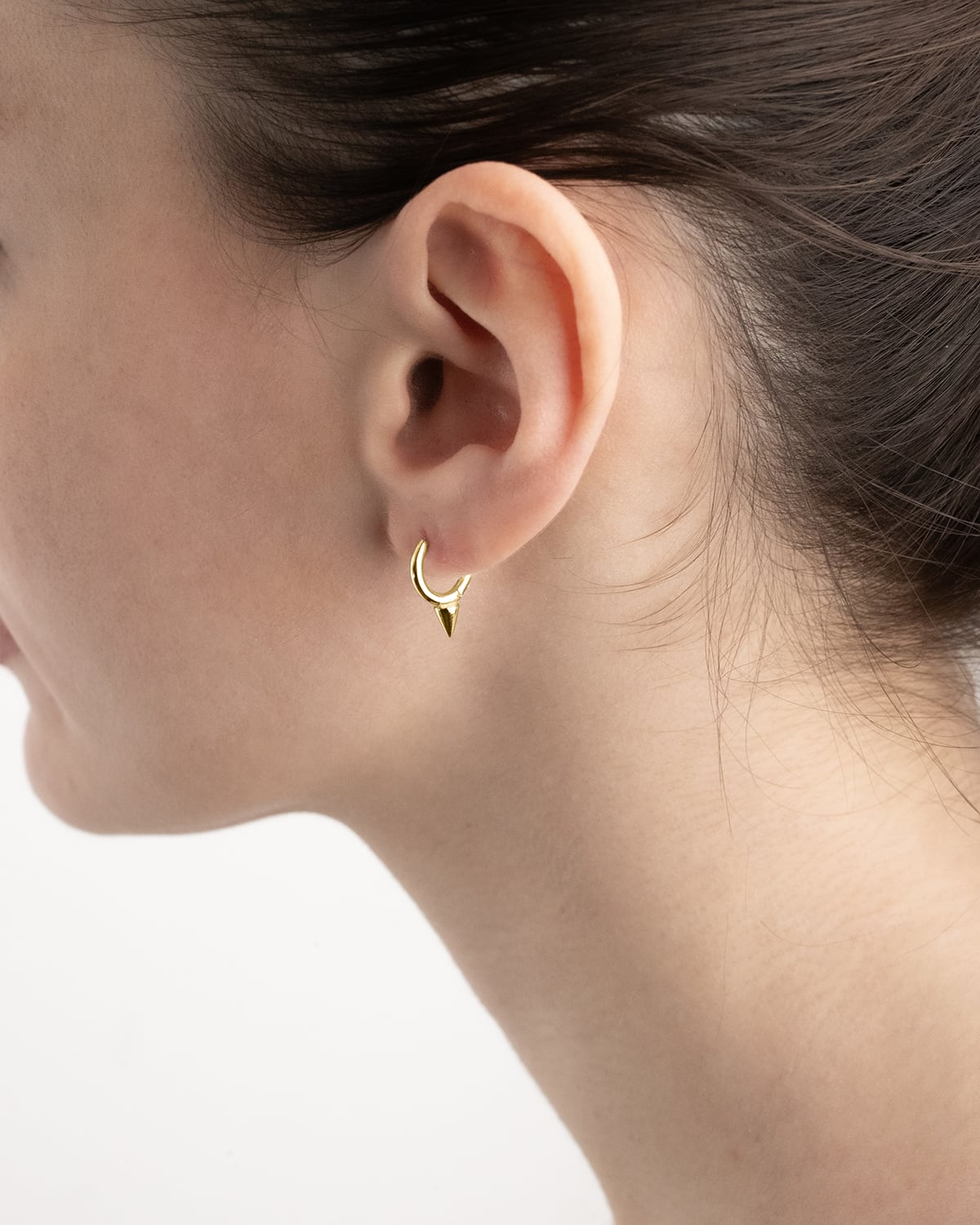 PENDIENTE DE ARO PLATEADO ORO CON BRILLANTES CON 3 PUNTAS CONO