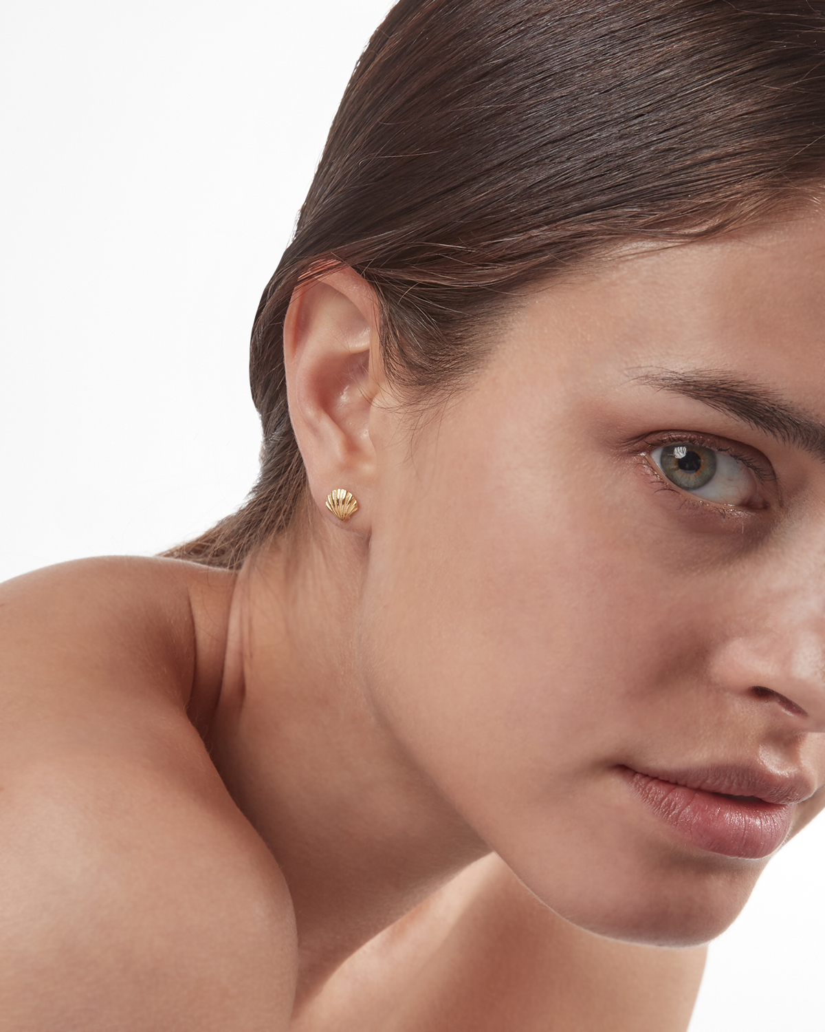 La concha dorada del pendiente Venus se vuelve tan preciosa como la perla que oculta. El cofre se transforma en una joya.
