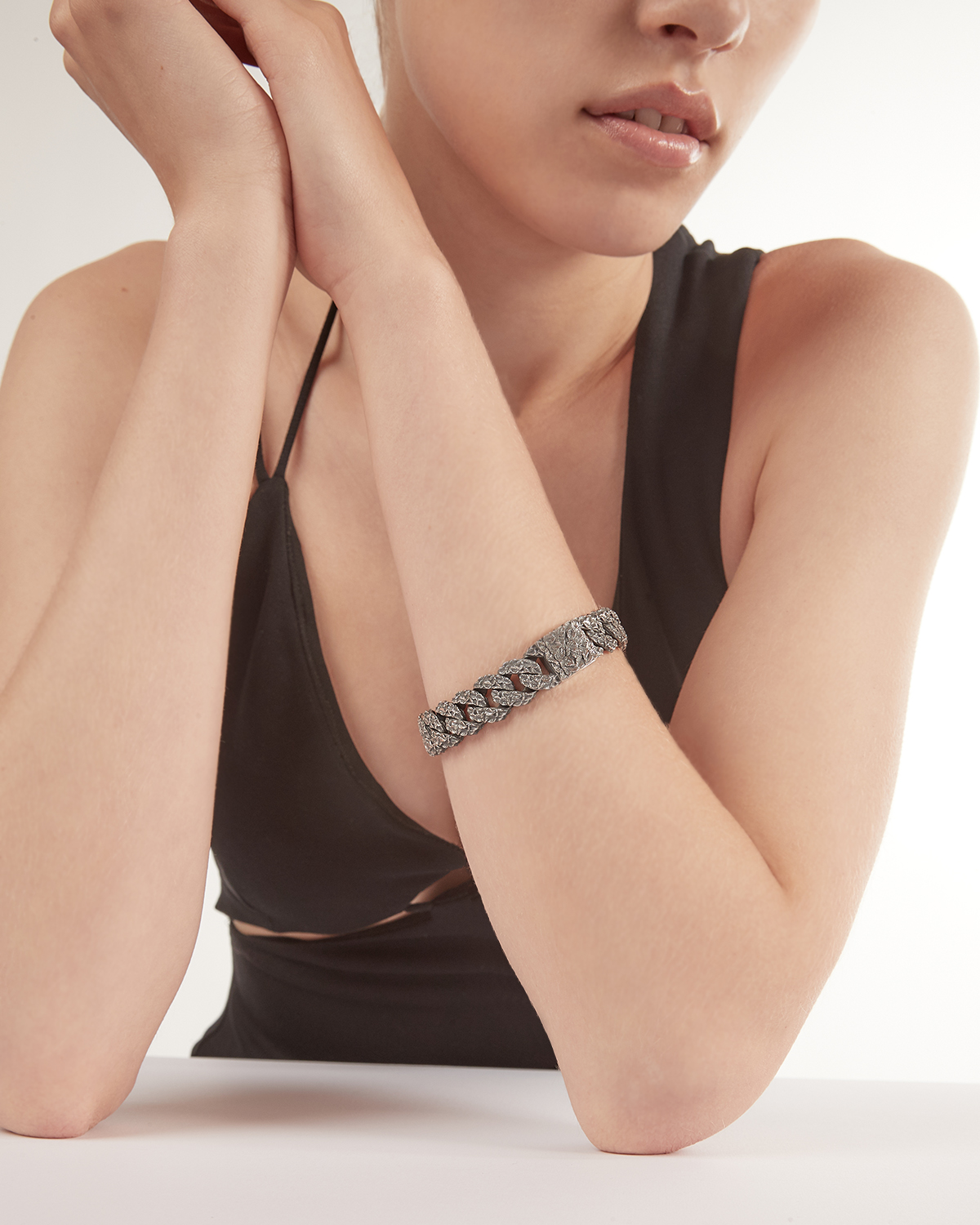 La Pulsera Grumette Hojas Plata De Ley Plata Bruñida Plata De Ley forma parte de la Colección Eden y está fabricada en plata de ley 925. Como todas las joyas Nove25 también esta Pulsera se diseña y fabrica íntegramente en Italia con las tecnologías más modernas y se termina a mano para garantizar el máximo cuidado en los detalles y la más alta calidad. Esta joya se presenta en un acabado Bruñido Brillante y está disponible en las siguientes tallas: 19-20-21 cm.