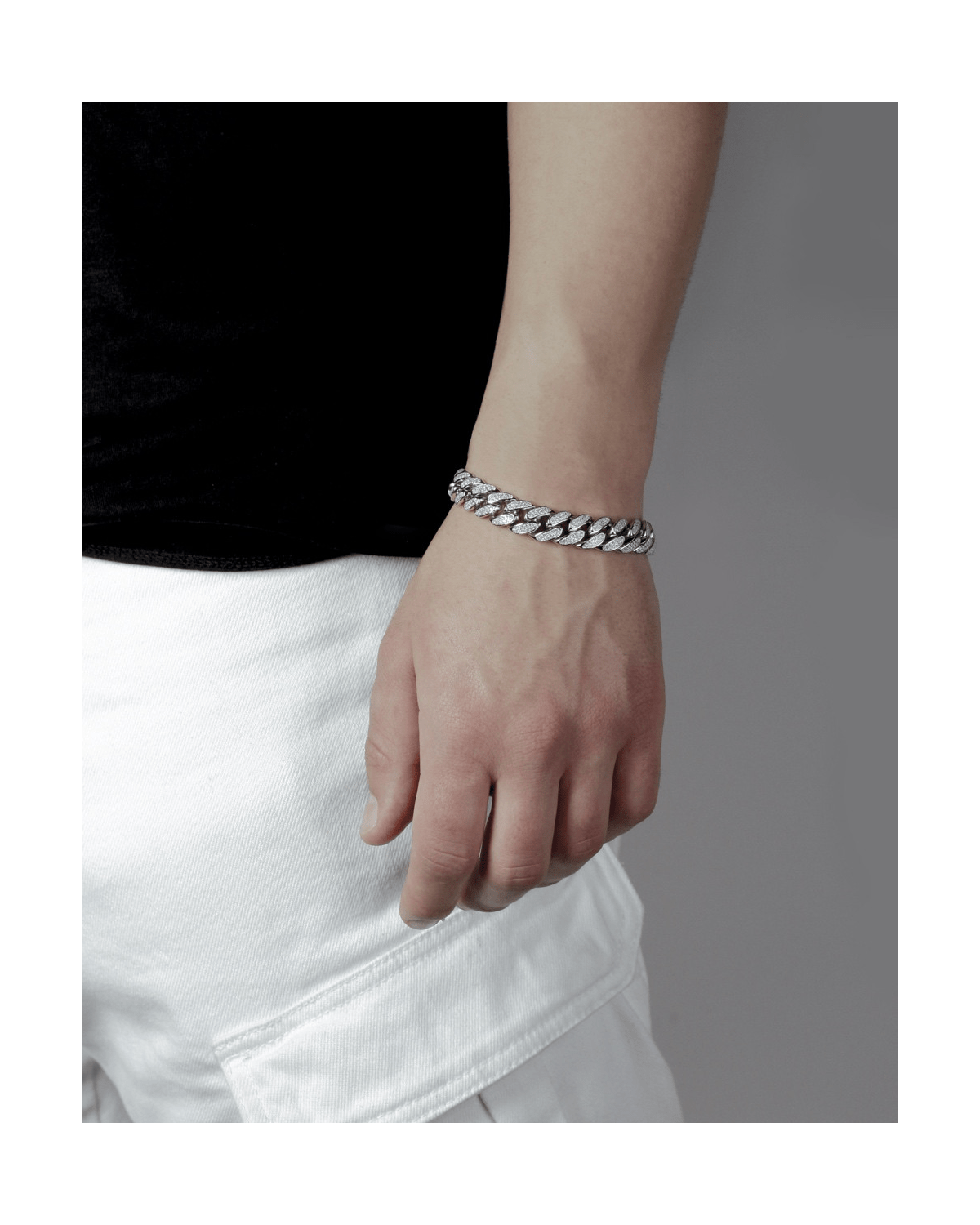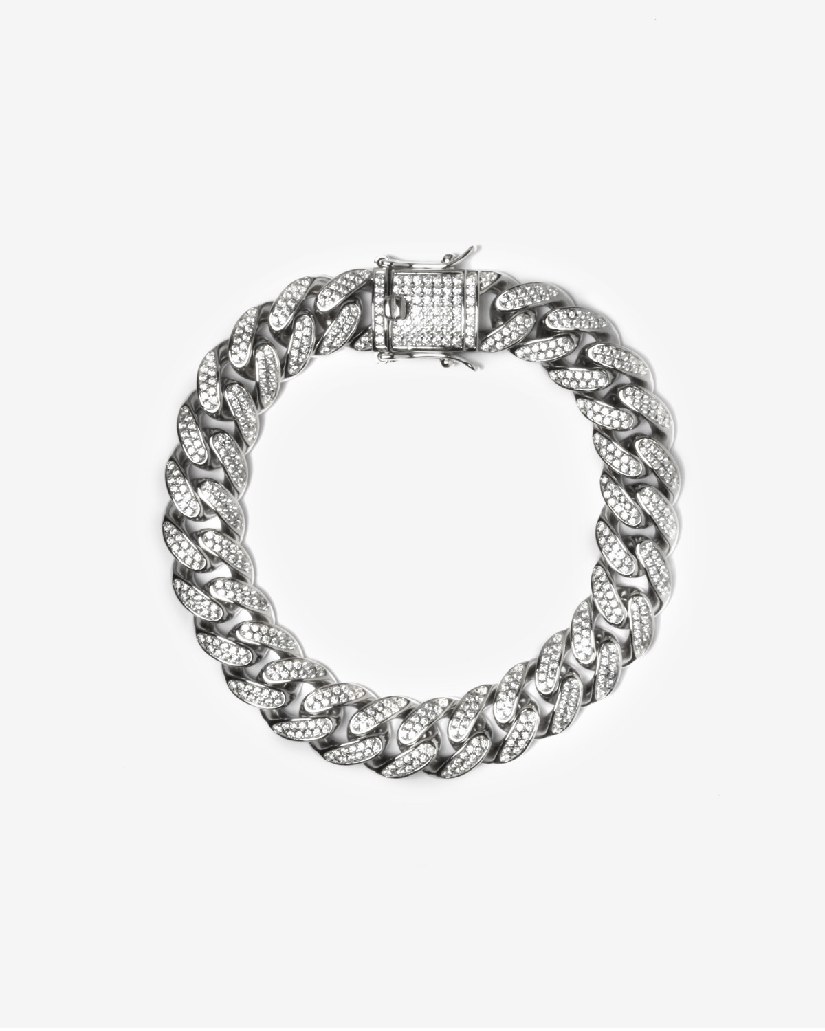 CLIP ON WHITE CUBIC ZIRCONIA SINGLE HOOP EARRING / POLISHED RHODIUM PLATED