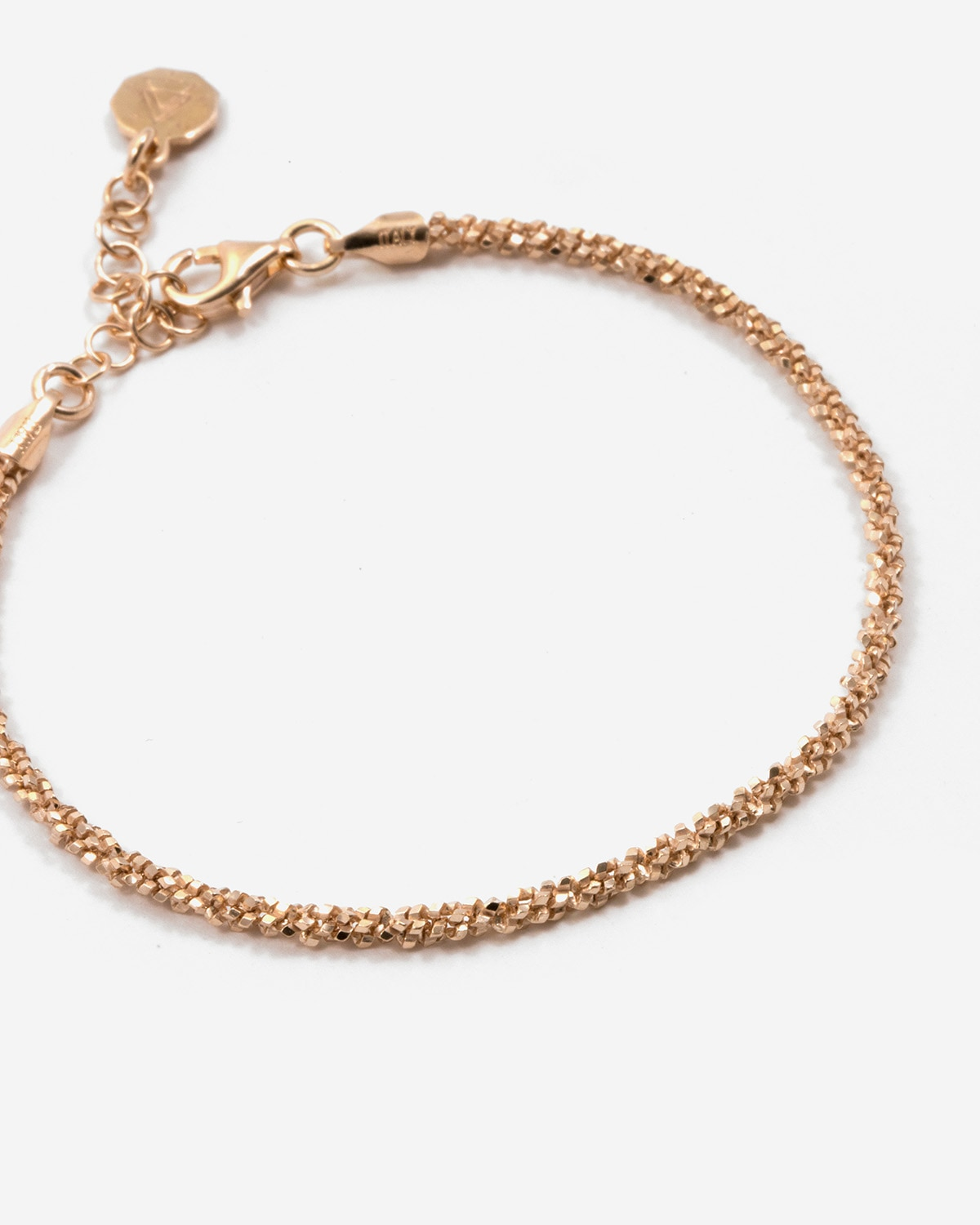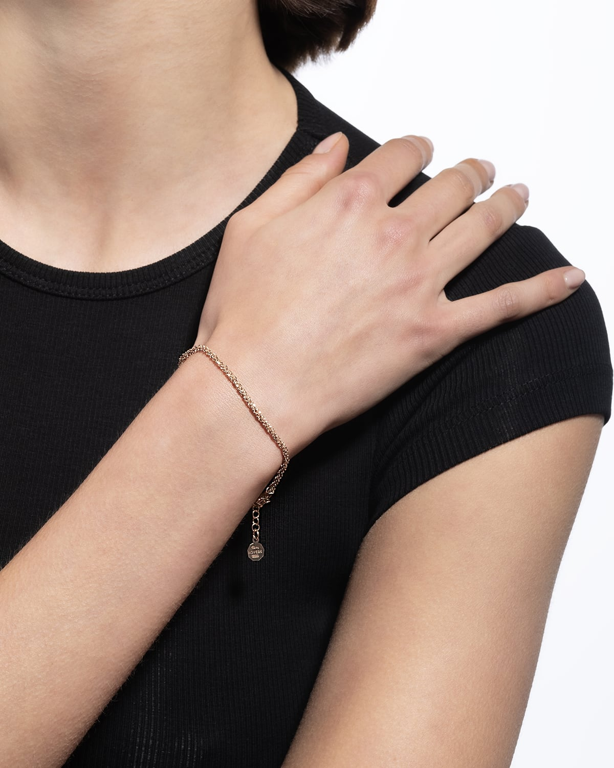 Sutil y delicada, la pulsera LUZ brilla gracias a su coloración en oro rosa, manteniéndose fiel a la nueva paleta de primavera Nove25.
