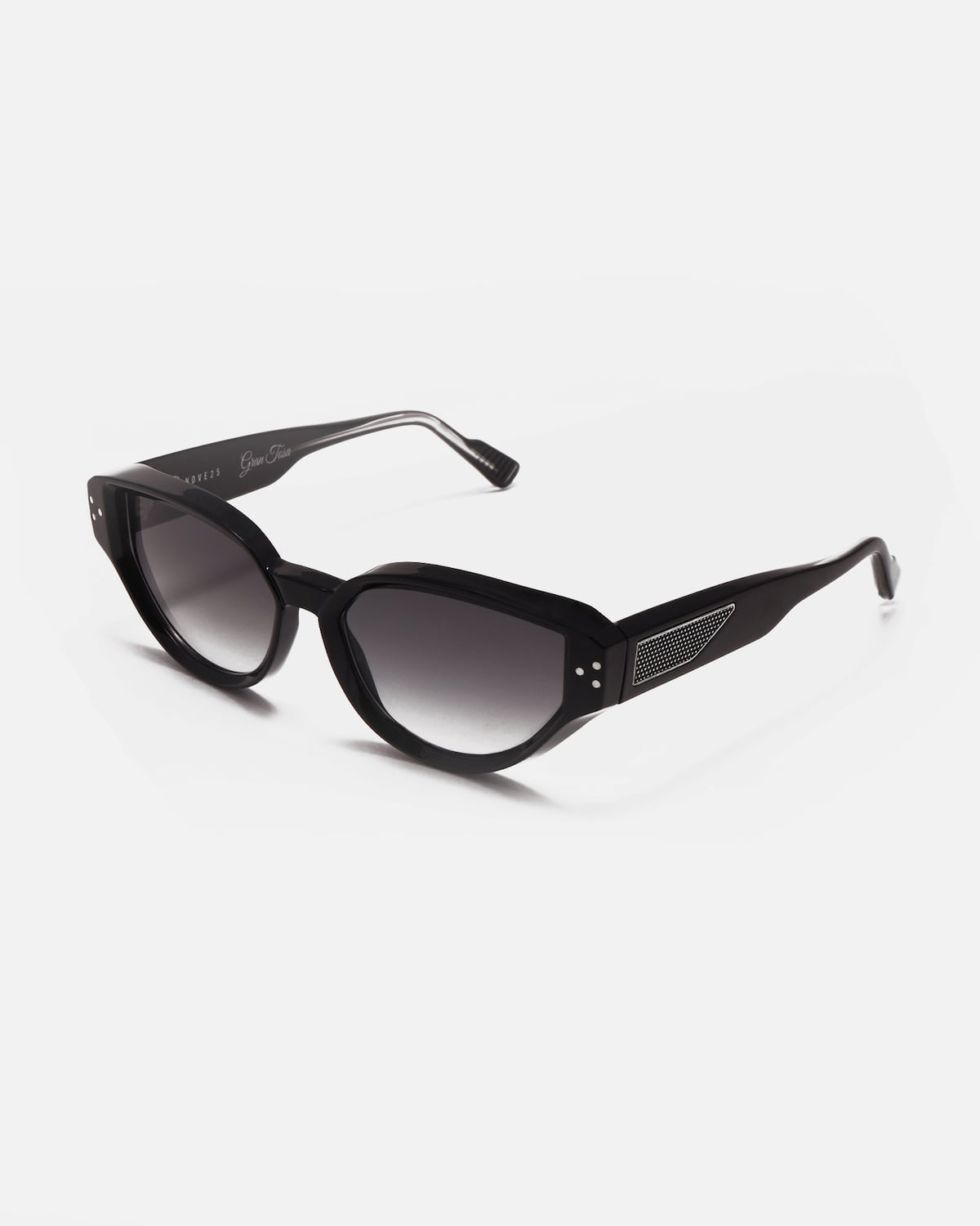 El modelo cat-eye está diseñado para ser la propuesta más fluida dentro de la cápsula. Los frisos de plata y la forma audaz de sus elementos dan un carácter fuerte al diseño, sin sacrificar la idea de elegancia que inspiró su perfil único y siempre reconocible.