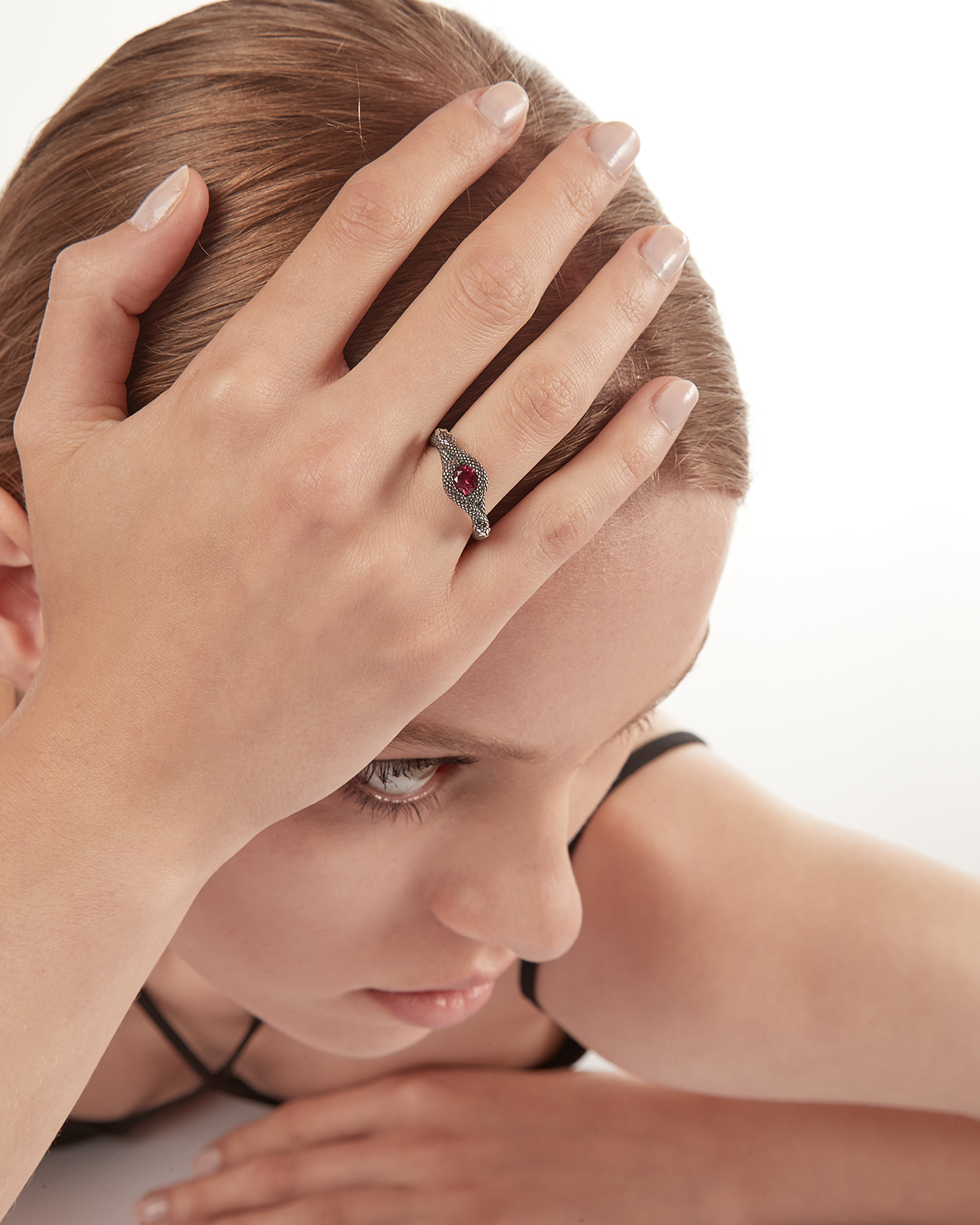 Solitaire black cubic zirconia snake fine ring Sterling Silver with ruthenium galvanic and black cubic zirconia Polished ruthenium coated finish