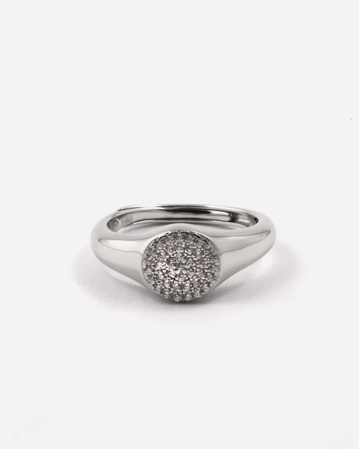 Zircon Square Signet Ring Sterling Silver and white Zircons Polished finish