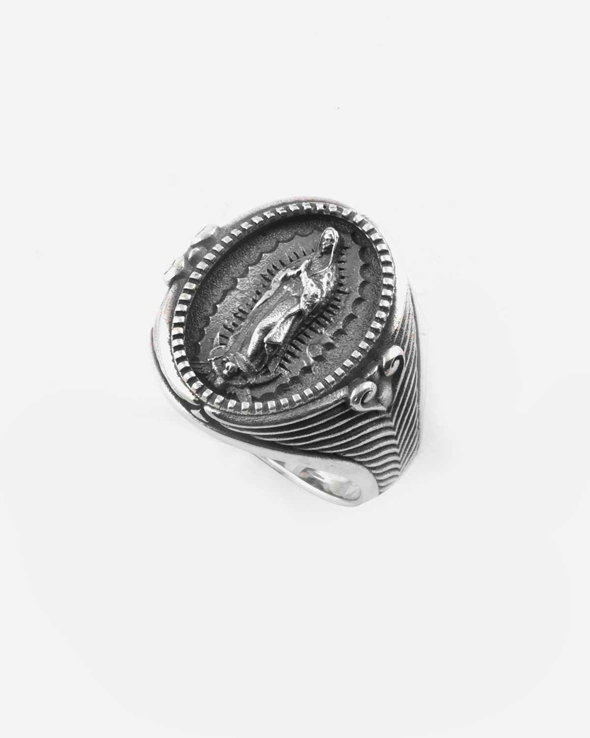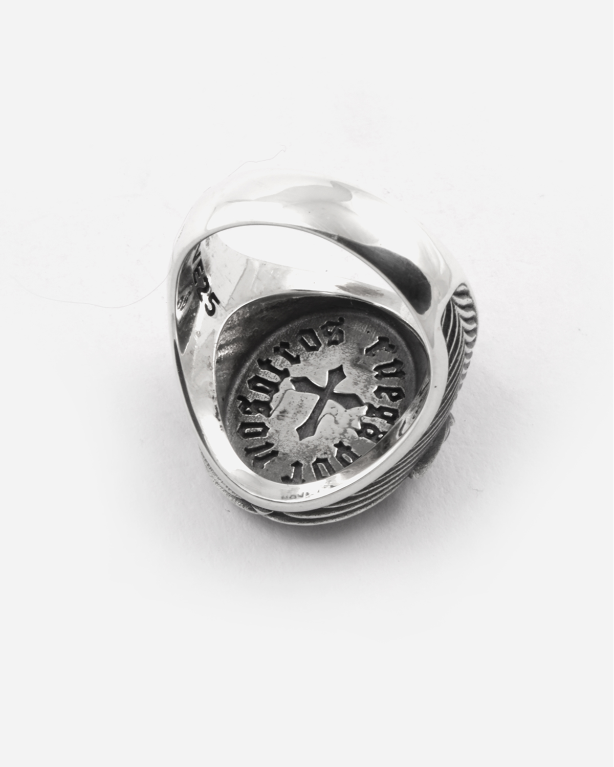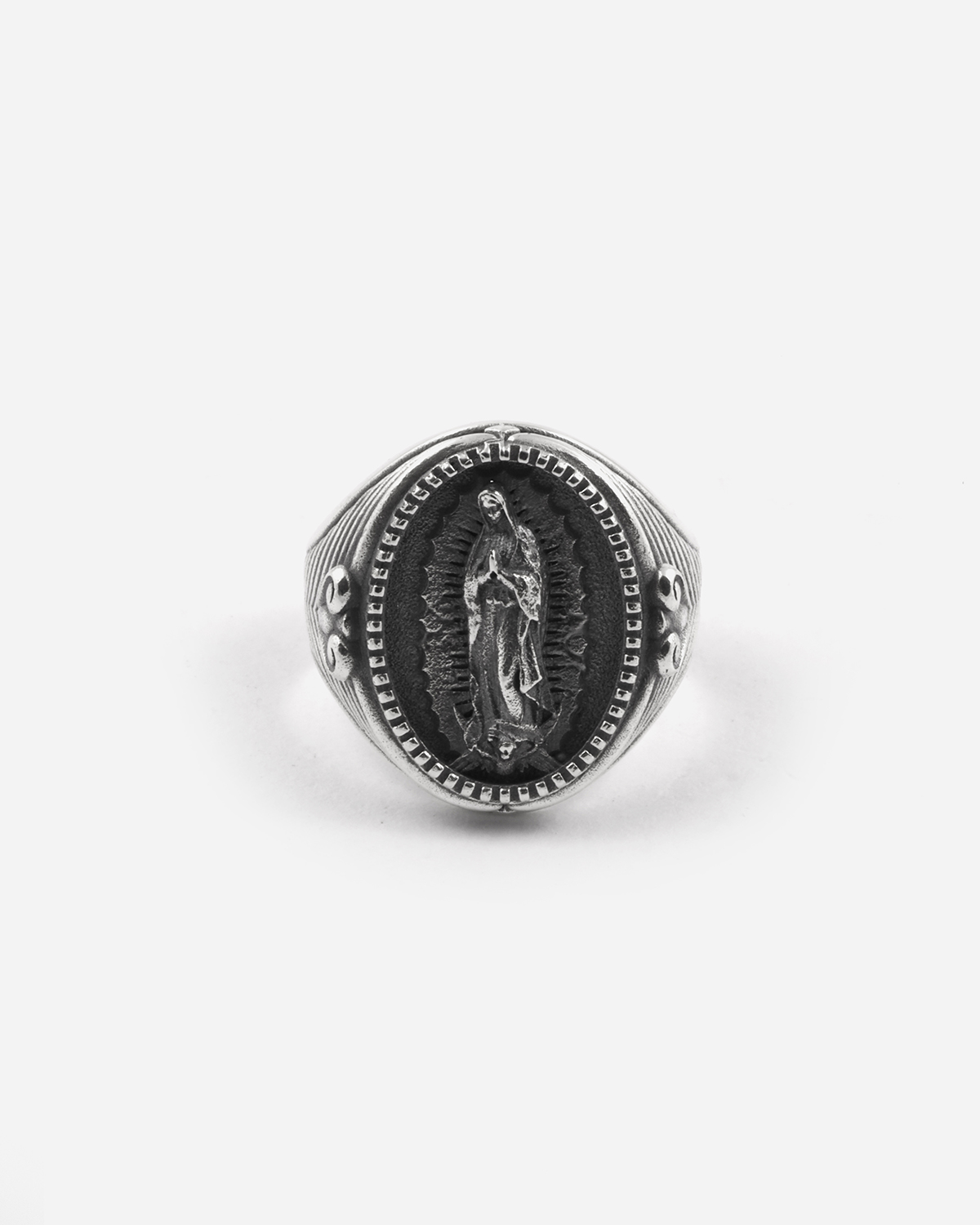 Oval Santa Muerte Signet ring Sterling Silver Polished burnished finish