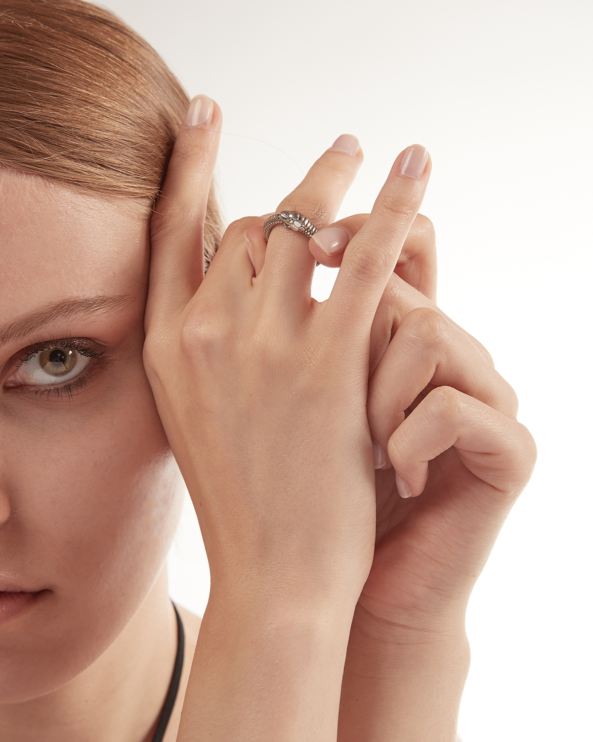 Solitaire corundum snake fine ring Sterling Silver Polished burnished finish