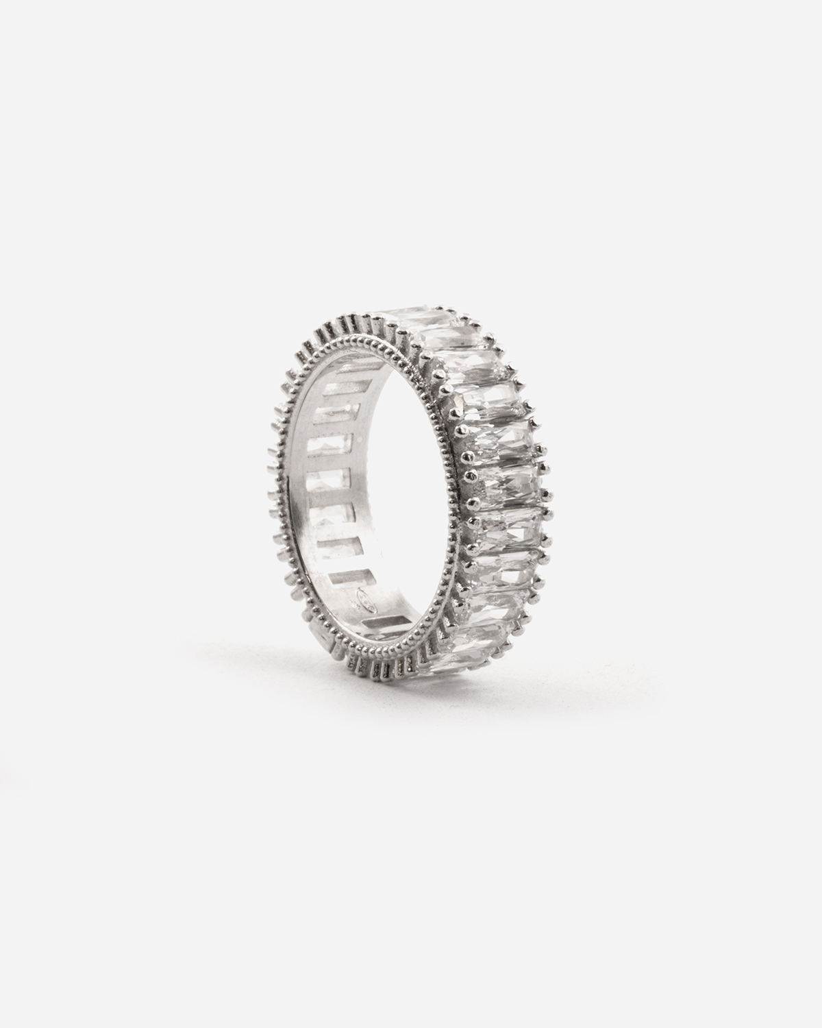La bague White Garland en zircon cubique blanc couronne le doigt du porteur comme une guirlande de lumière.