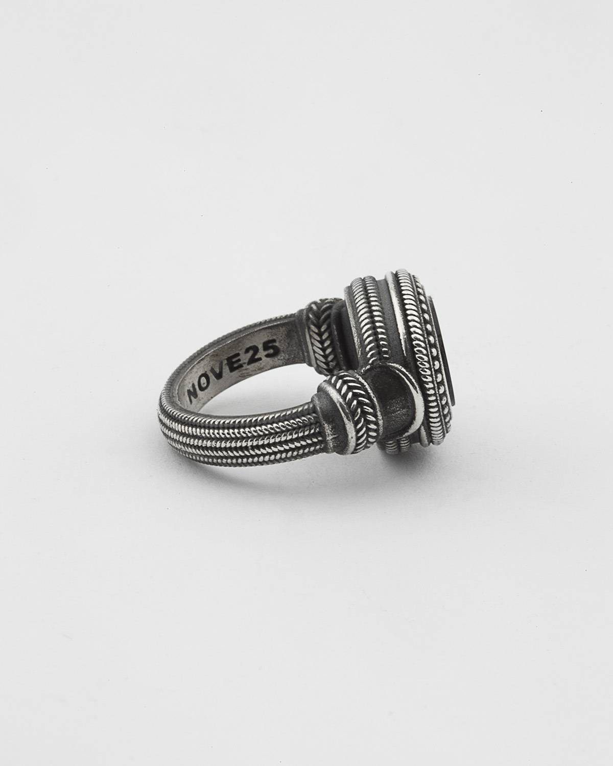 Silver Omnia Vincit Amor Lapis Signet Ring