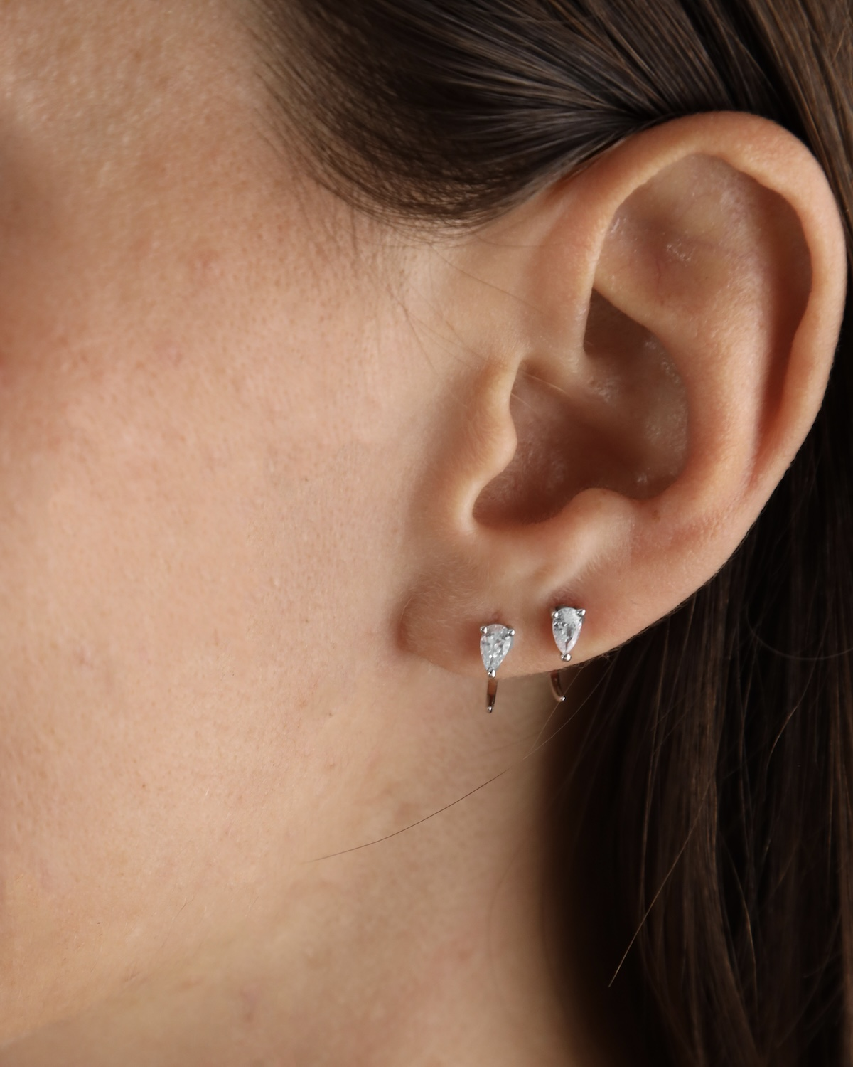 BOUCLE D'OREILLE CROCHET EN ARGENT AVEC GOUTTE ET BRILLANT