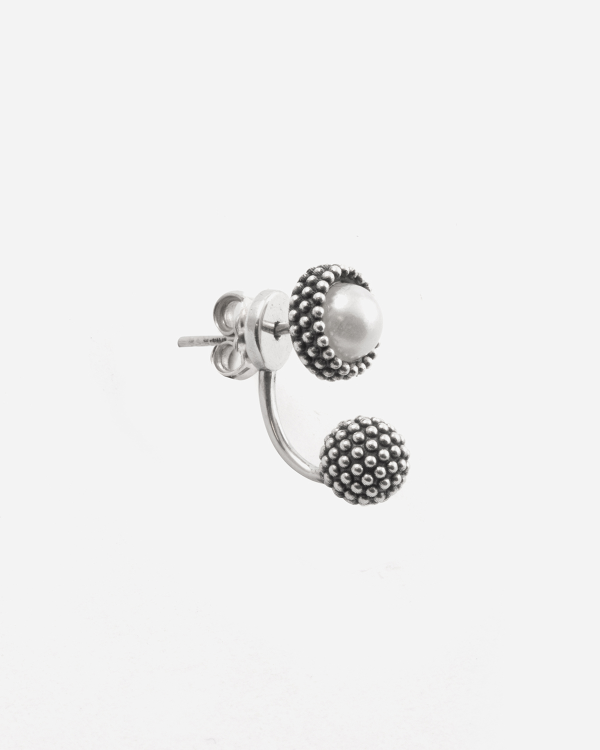 BOUCLE D’OREILLE LOBE À PICOTS PEARL FLOWER EN ARGENT AVEC PERLE ET SPHÈRE