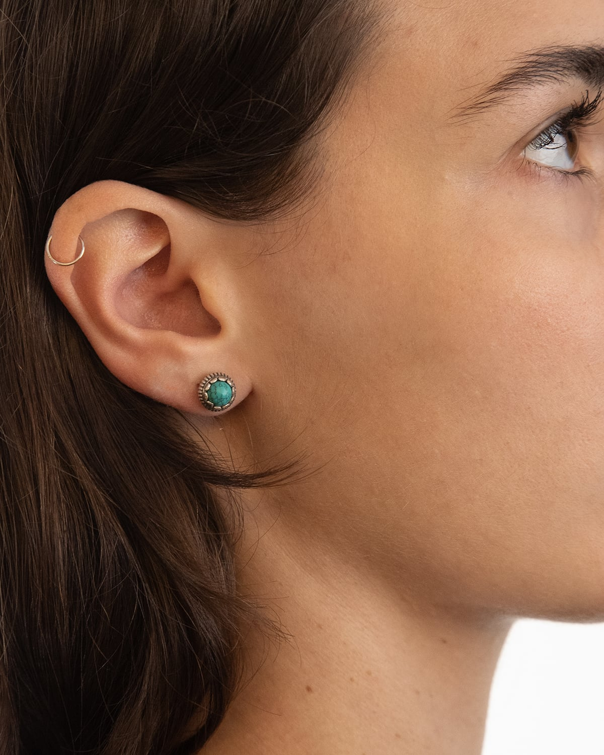Tout comme un totem, la boucle d'oreilles Totem est ornée de lignes et de points qui ressemblent à des graphèmes intraduisibles issus d'une langue inconnue, et d'une précieuse pierre centrale de couleur turquoise. Avec un fort impact esthétique, la stèle en argent devient un bijou précieux et mystérieux, idéal pour qui apprécie le charme de l'inconnu.